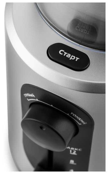 ● Простота использования - всего одна кнопка управления, интуитивно понятное регулирование степени помола