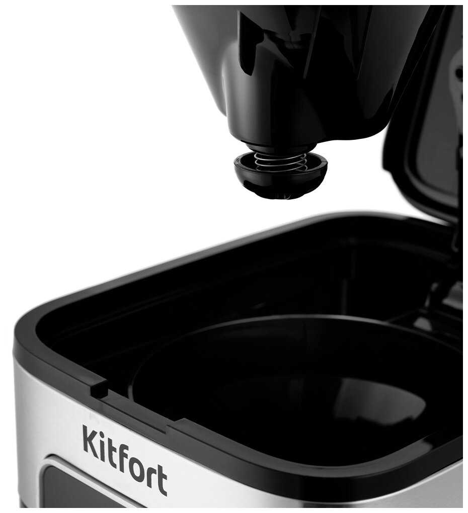 - Сохраняет вкус без горчинки, как от подогрева, и позволяет отключать кофеварку сразу после приготовления.