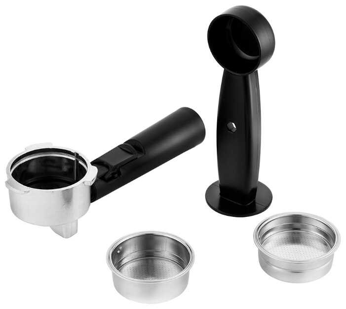 - в комплекте есть все необходимое для приготовления эспрессо, капучино и латте. У рожка есть встроенный упор, так что не нужна резиновая накладка на край стола для фиксации рожка;