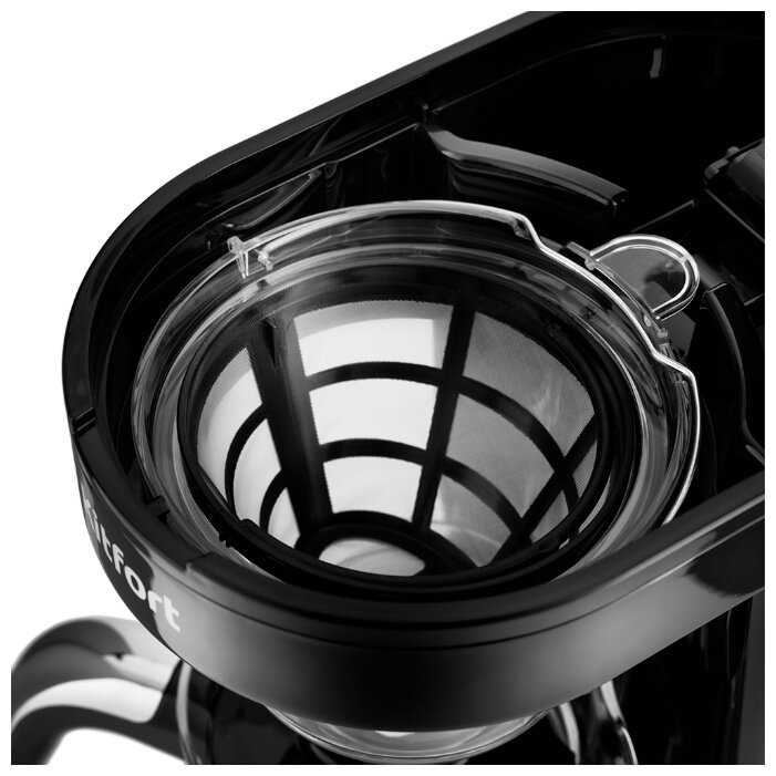 - + Очень простая в использовании, даже ребенку понятно как пользоваться. Очень легко моется. Можно готовить разный кофе, если использовать съемные фильтры. Удобно что воронка откуда кофе льется с ручкой, можно снимать даже горячим, так же ручкой оснащен фильтр для кофе, провод достаточной длины. Цвет у нас черный. После приготовления, включается подогрев кофе на целых 40 минут! Очень удобно.