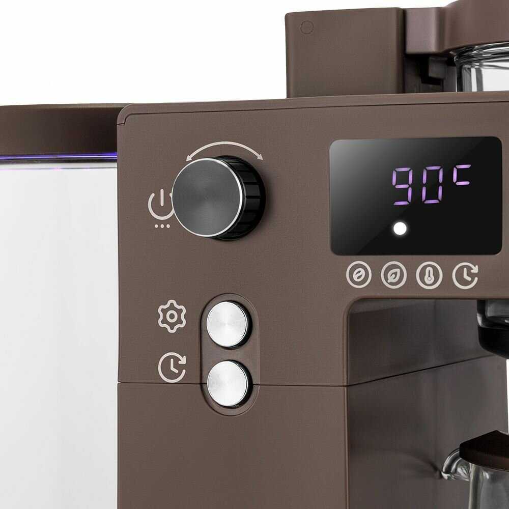 - - Первое время кофе сильно вонял пластиком, нет возможности установить врем запуска, а только можно установить через какое время запустится кофеварка, по этому если мне нужно что бы кофе заварил я в 06:00 мне приходится отсчитывать через сколько часов она должна включится, при включенном подогреве кофейника продолжает подливать кипяток, то есть если включу кофеварку на 4 чашки то за пол часа подогрева она дольет полный кофейник