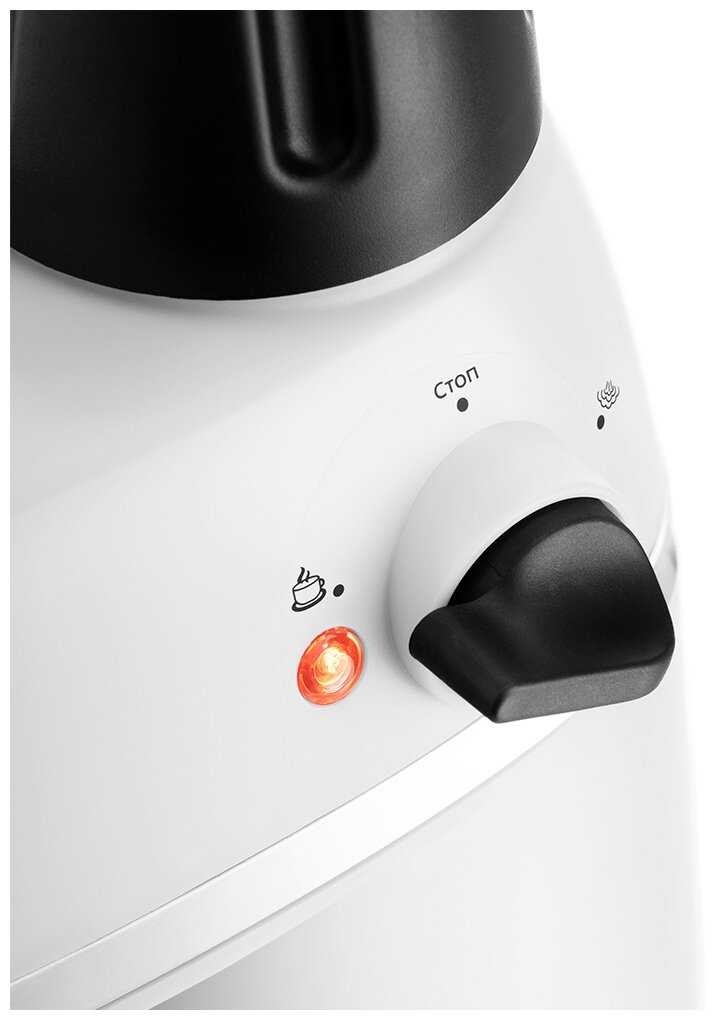 кофе делает хороший, главное не переборщить с насыпанием самого кофе, для этого использую мерную ложку. - - при первых запусках сильно шел пар, стала сильнее прикручивать клапан для воды, и закручивать емкость с кофе и проблема была решена.