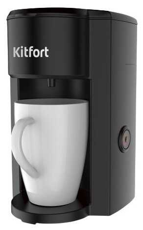 - + Кофемашина Kitfort KT-796. Аккуратная, выдержанная в едином стиле, компактная. Две кнопки управления. Высокая термокружка. Общее впечатление -