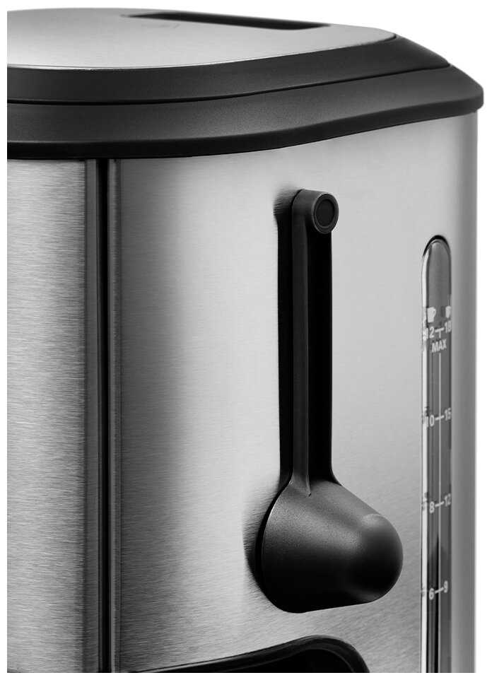 - Широкий распылитель равномерно распределяет воду по фильтру, что обеспечивает полноценную экстракцию кофе.