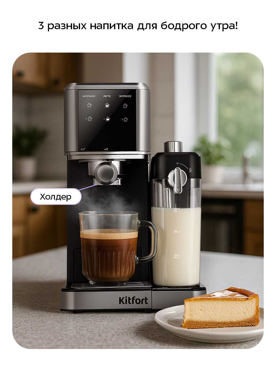 Я долго выбирала рожковую кофеварку, и мой выбор пал на Kitfort КТ-7693. И знаете что? Я ни капли не пожалела! Эта кофеварка стала настоящим открытием для меня и превратила мою утреннюю рутину в настоящее удовольствие.