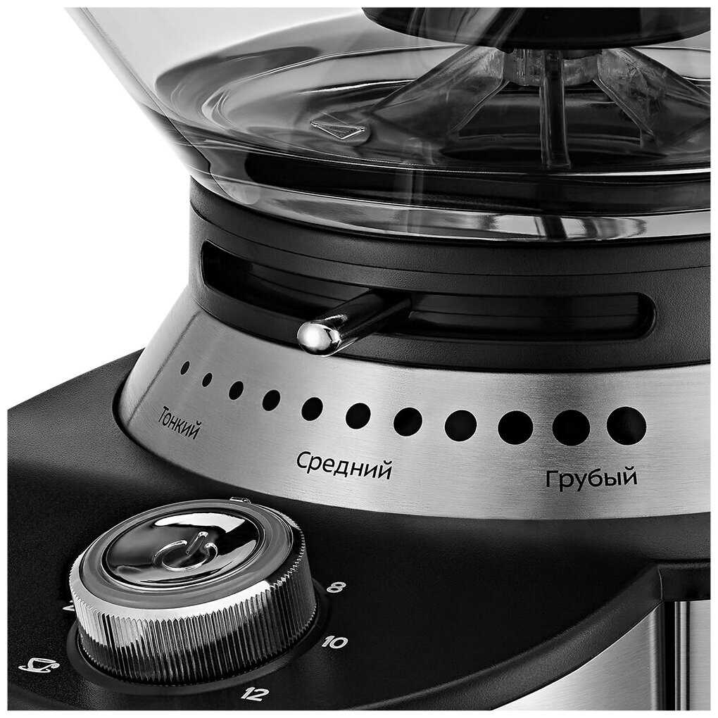 - Регулировка степени помола с широким диапазоном настроек: