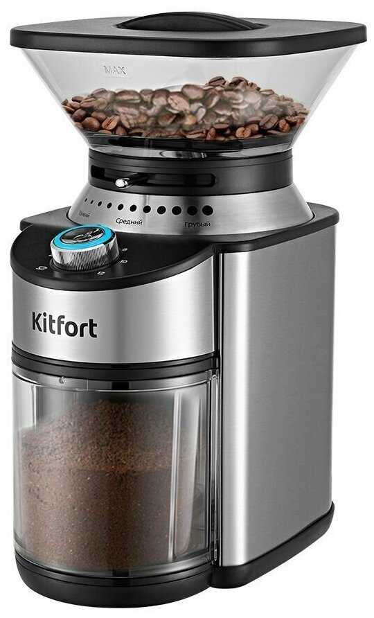 Первая моя кофемолка. Долго выбирал, прочитал кучу отзывов и пересмотрел множество обзоров. Ранее не имел дела с продукцией данной фирмы и зря. Пластик ничем не пахнет, собрано очень достойно и не вызывает негативных эмоций. Что касается работы кофемолки, то я не советовал бы ее, если варите кофе в турке, для остальных способов заваривания кофе, она вполне подходит. Я варю в капельной кофеварке и в гейзере. Для гейзера выставляю самый мелкий помол, а для капельной на 2 деления от минимума. На среднем помоле, очень много крупных частиц, что не очень хорошо, а на максимальном даже пробовать не буду, зачем зря зерна переводить?! Для моих целей, кофемолка подошла отлично, но есть недостатки, которые устроят не всех. Следующая кофемолка точно будет от kitfort, но классом повыше, с коническими жерновами.