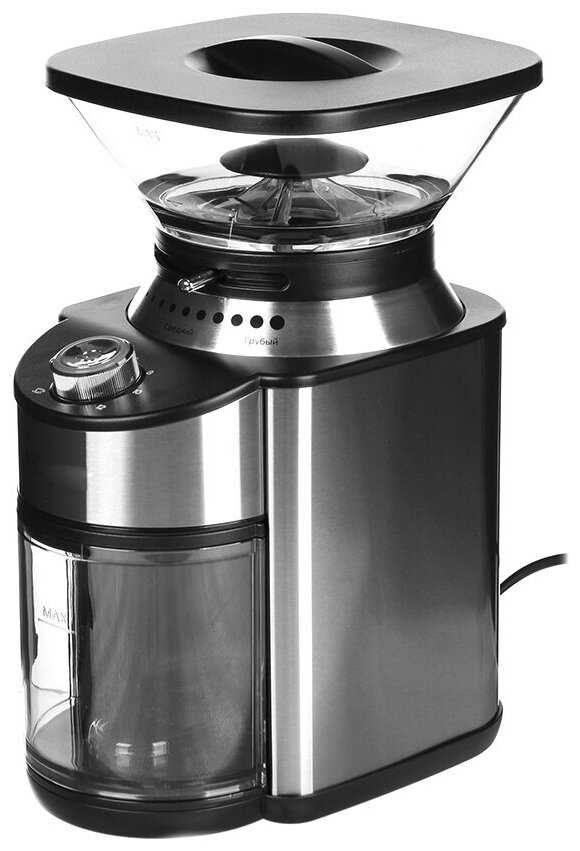 - Жернова из нержавеющей стали обеспечивают долговечность и стабильность помола даже при интенсивном использовании.