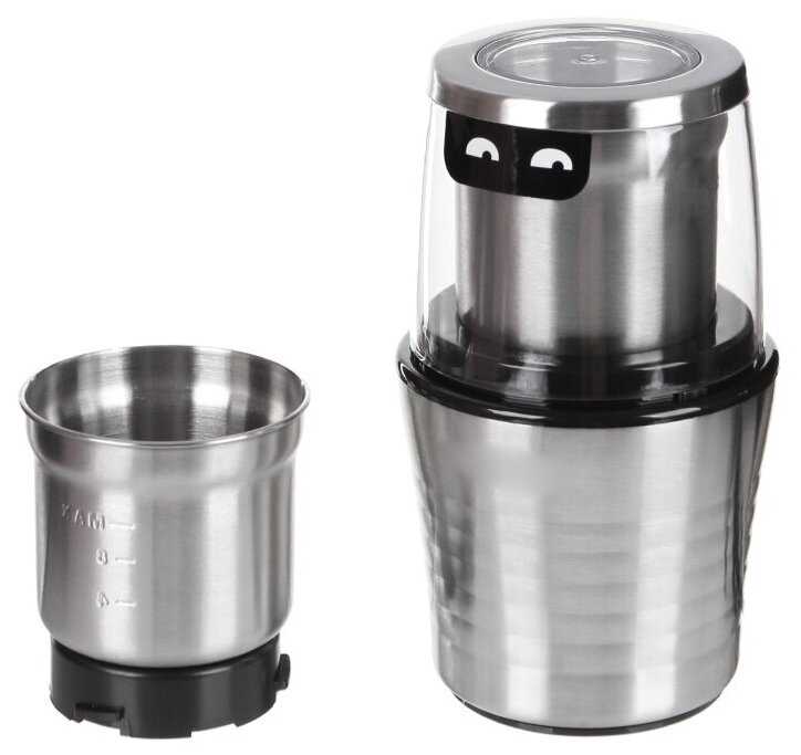 - + Функциональный прибор с двумя чашами, который можно использовать как кофемолку и как измельчитель для для специй и других ингредиентов.