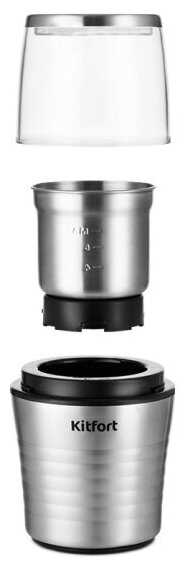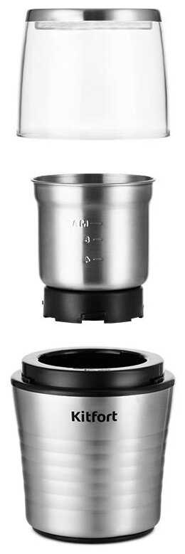 - + Кофемолка просто супер! Две стальные съёмные чаши с двумя и четырьмя ножами, что очень удобно. Работает четко при нажатии на крышку. Очень удобно мыть, снял помыл и пользуйся снова. Техника Kitfort очень комфортная в пользовании.