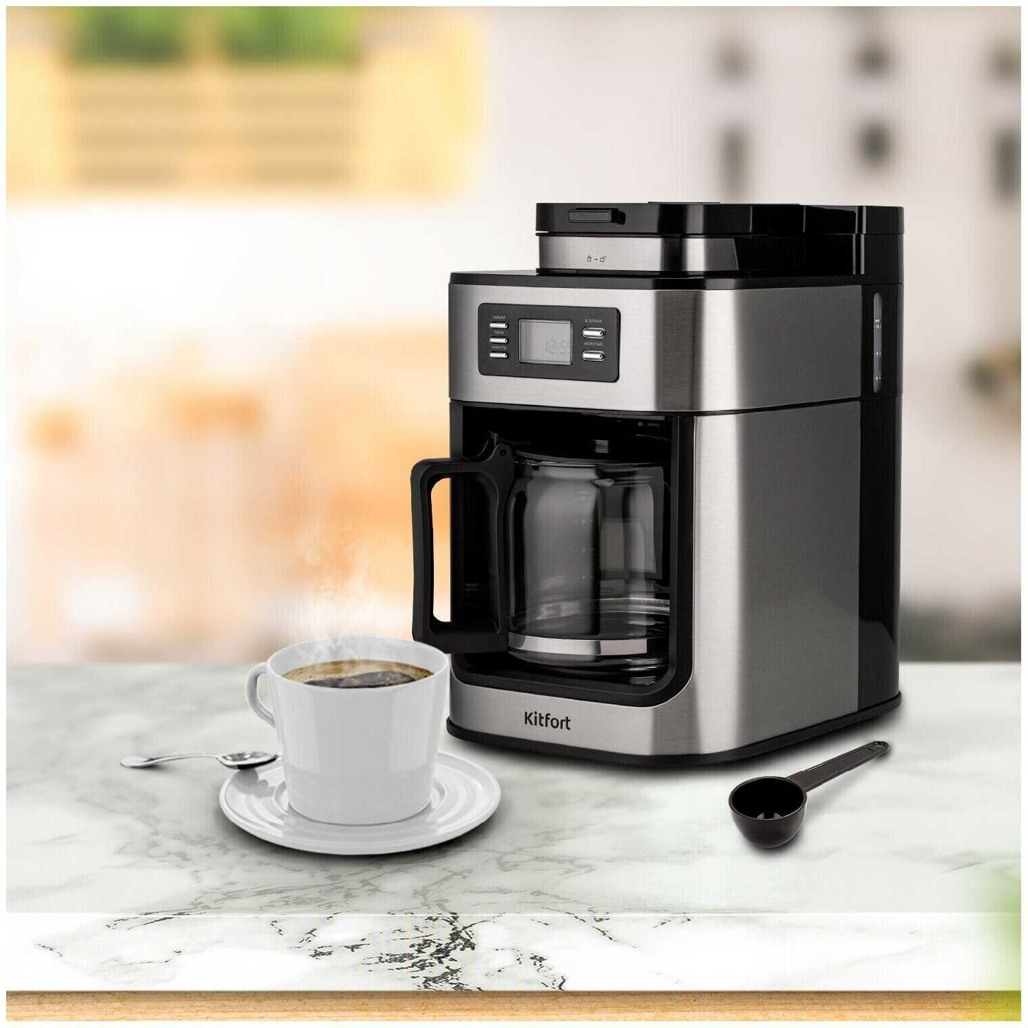Кофеварка Kitfort KT-781 - отличное устройство для приготовления вкусного кофе! Я пользуюсь ей уже несколько месяцев и остаюсь полностью довольна результатом. Она очень проста в использовании, благодаря интуитивно понятному интерфейсу. Кофе получается насыщенным и ароматным, при этом можно выбирать степень помола и количество порций. Емкость для воды достаточно большая, так что можно приготовить напиток для нескольких человек одновременно. К тому же она компактная и легкая, что позволяет удобно хранить и перемещать её по кухне. Рекомендую кофеварку Kitfort KT-781 всем любителям кофе!