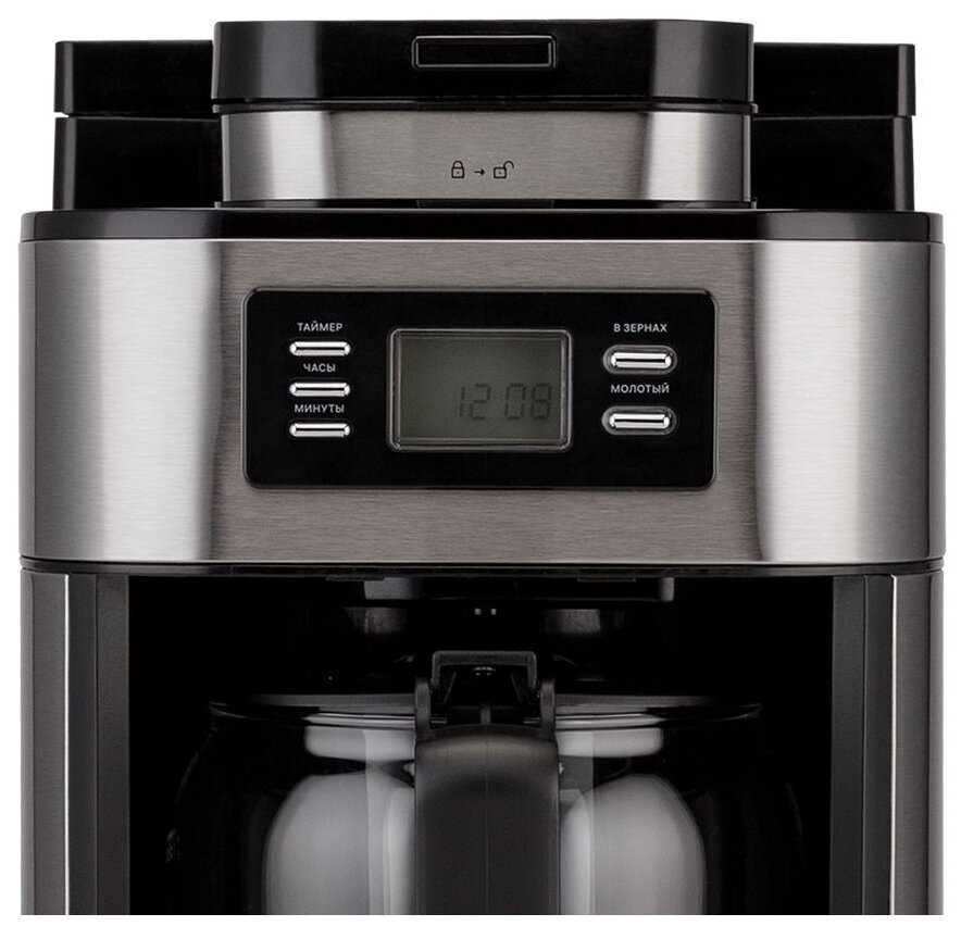 - + Проста в использовании, кофе готовиться нажатием одной кнопки. Засыпать внутрь можно как молотый кофе, так и зерновой. Есть функция подогрева и таймер включения. Работает тихо. Благодаря большому кофейнику можно сразу приготовить кофе на несколько человек. После применения легко моется.