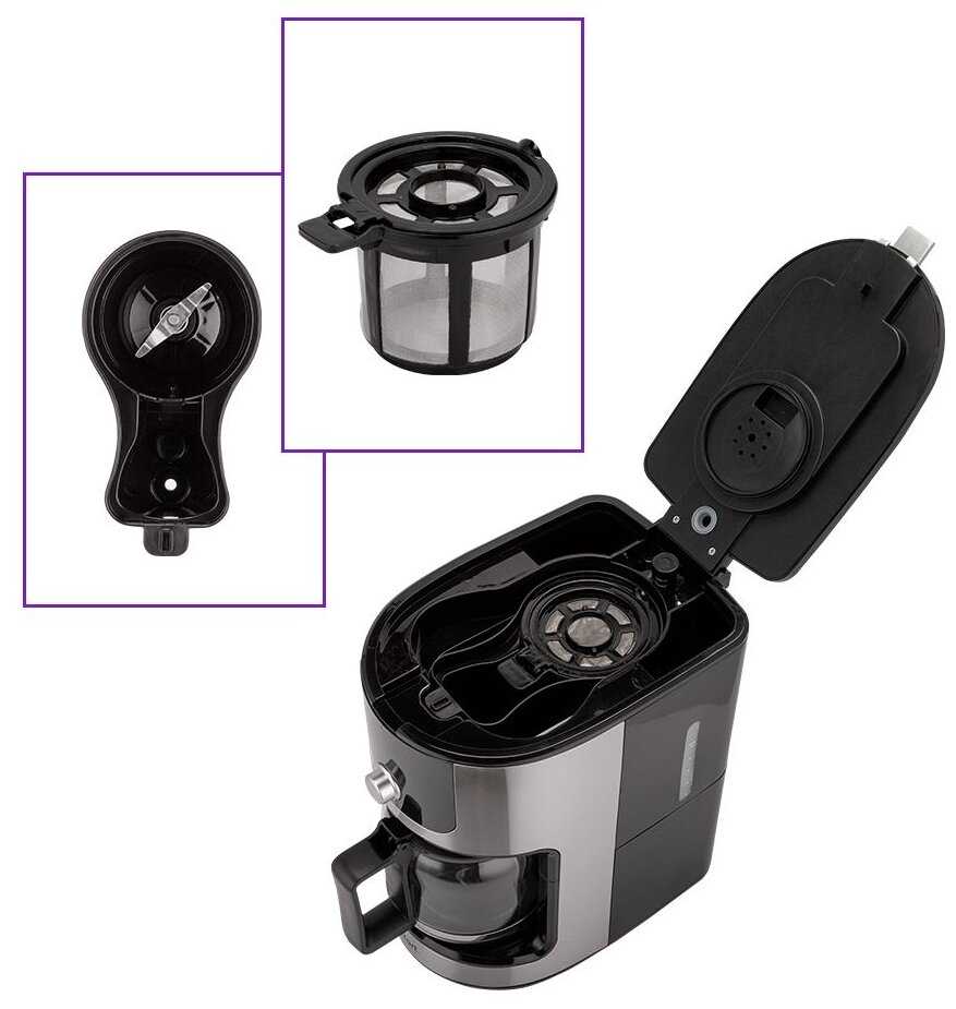 + Противокапельная система: можно не дожидаться наполнения всего кофейника, чтобы налить себе кофе. Вынимаешь кофейник и подача кофе остановится с помощью клапана.