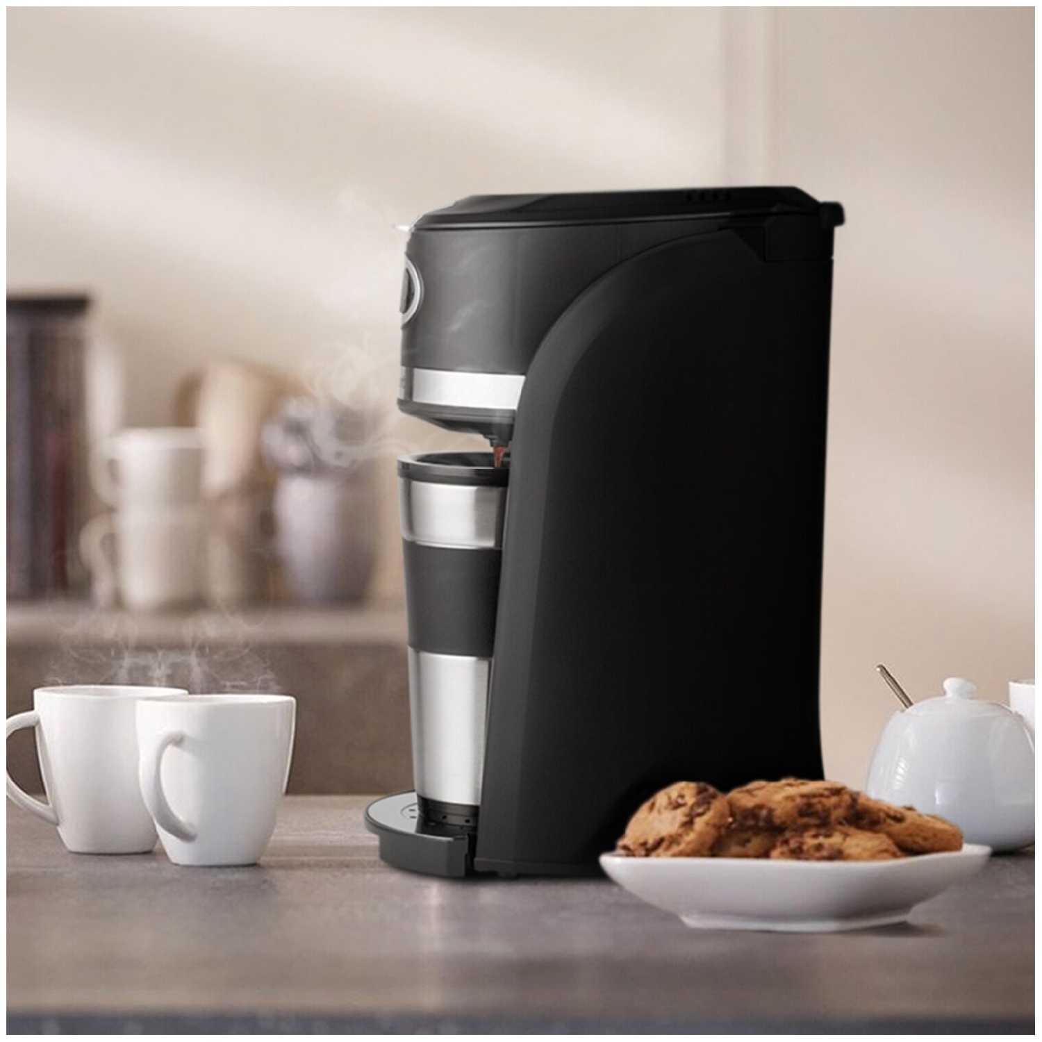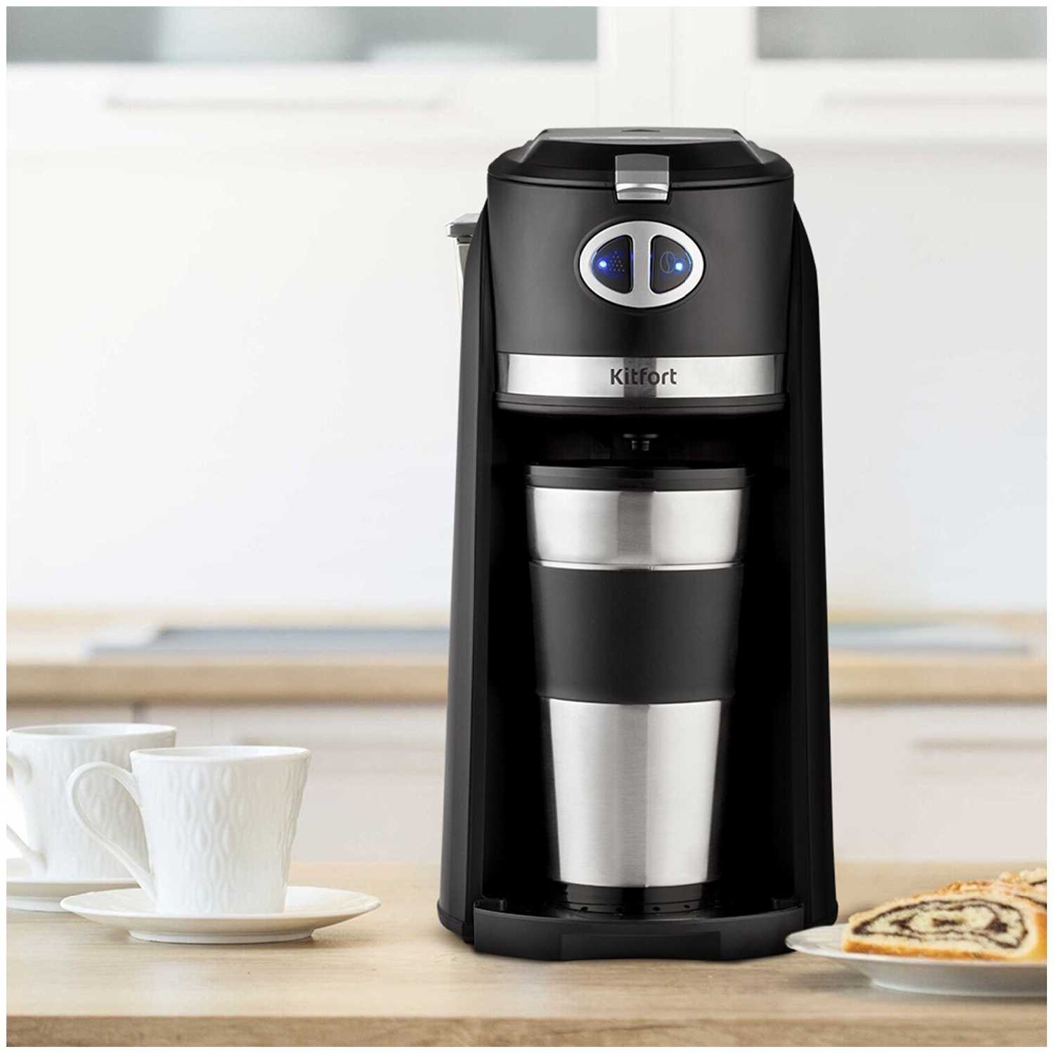 Компактность и место в кухонном пространстве. Одним из ключевых преимуществ модели является ее компактность; аппарат занимает минимум места на столешнице, будучи выше обычного электрочайника, но уже многих классических кофемашин. Это делает ее идеальным решением для малогабаритных кухон, рабочих мест в офисе или использования на даче. Пользователи, сравнивавшие ее с более крупными и дорогими моделями (например, Delonghi), отмечают, что разница во вкусе готового напитка незначительна, что подчеркивает эффективность компактного решения. Дизайн устройства, описанный как стильный и минималистичный, хорошо вписывается в различные интерьеры, а наличие термокружки в комплекте добавляет практичности, позволяя взять напиток с собой. Аппарат рассчитан на приготовление одной большой порции кофе объемом до 420 миллилитров, что идеально подходит для одного или двух человек, но делает его менее практичным для больших семей или компаний.