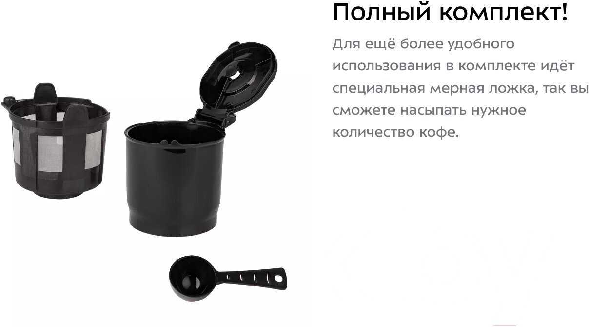 - Конструкция фильтра пропускает воду через весь кофе, обеспечивая полную экстракцию ароматов без осадка в чашке.