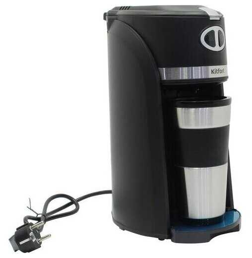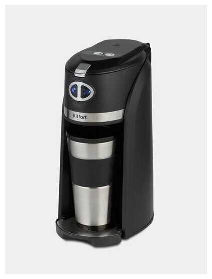 Управление и удобство использования. Управление кофеваркой максимально упрощено и сводится к двум кнопкам, отвечающим за выбор типа кофе: зерна или молотый. Пользователи высоко оценивают эту простоту, отмечая, что процесс приготовления не требует постоянного контроля — достаточно загрузить кофе, залить воду, нажать кнопку и дождаться, пока она перестанет мигать, сигнализируя о завершении работы. Отсутствие звукового сигнала о завершении приготовления является для одних плюсом, избавляющим от раздражающего звука, а для других — минусом, так как можно забыть о готовом кофе, занимаясь другими делами. Аппарат готовит одинаково быстро как с холодной, так и с теплой водой, что добавляет удобства в эксплуатации. Комплектная термокружка объемом 480 миллилитров полностью соответствует объему резервуара для воды (420 мл), предотвращая переливание, и долго сохраняет тепло напитка, что особенно ценится пользователями, любящими пить горячий кофе. Мерная ложка на 4 грамма, идущая в комплекте, служит удобным инструментом для дозировки, однако производитель рекомендует использовать не более 5 ложек без горки (20 граммов) за один цикл.