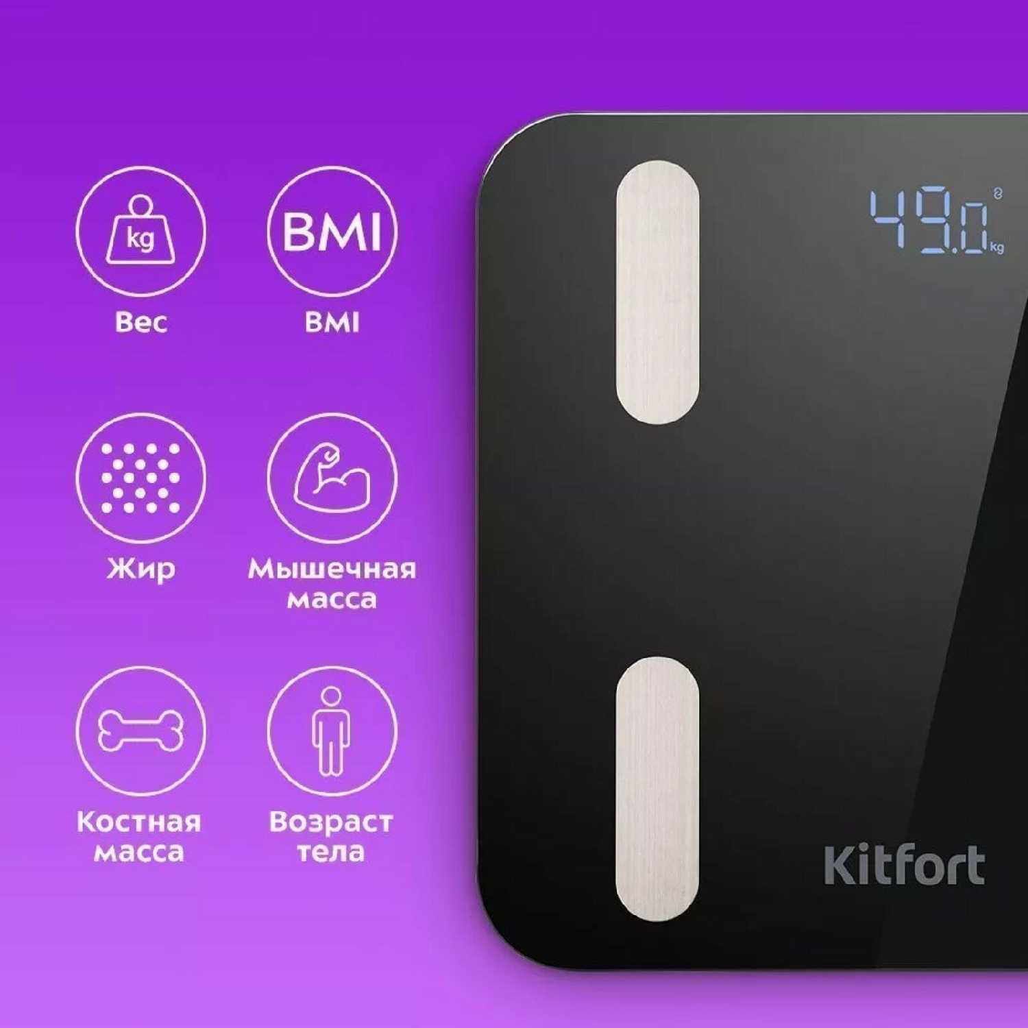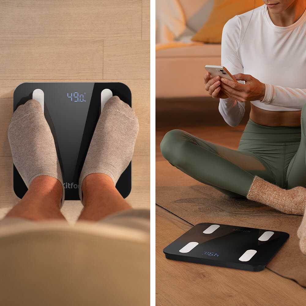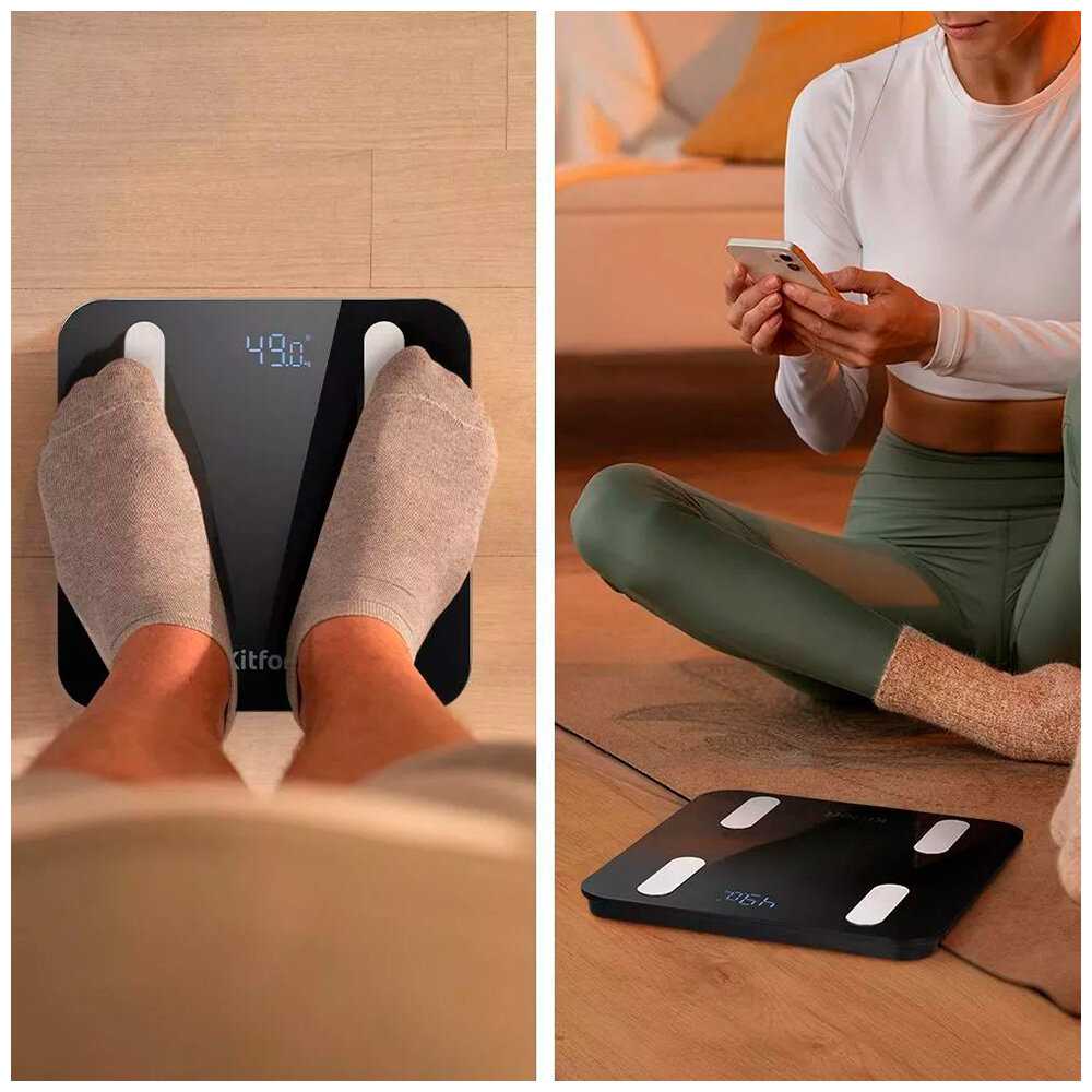 - + Купила Kitfort KT-805 несколько месяцев назад и очень довольна!Эти весы не просто показывают вес, но и анализируют состав тела: процент жира, мышц, воды и даже висцеральный жир. Очень удобно следить за прогрессом, особенно если занимаешься спортом или худеешь.
