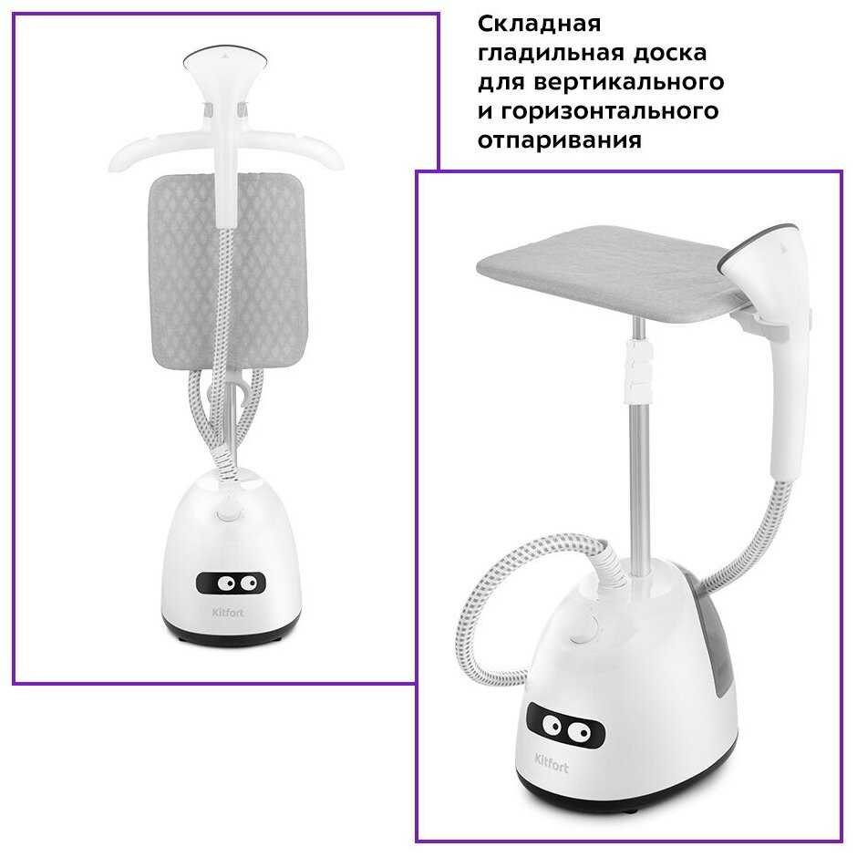 Техника китфорт очень нравится, поэтому при покупке отпаривателя не сомневались в выборе. Отпариватель, действительно, очень хороший, особенно радует цена . За такую цену отпариватель справляется со сложными тканями,нужно лишь выставить правильно температуру. Даже ребенок легко справился с отпариванием своей школьной одежды. Паровой шланг достаточной длины, чтобы отпарить шторы, телескопическая стойка достаточно устойчива. При этом Отпариватель компактный - легко поместился за дверью. Однозначно-рекомендую.