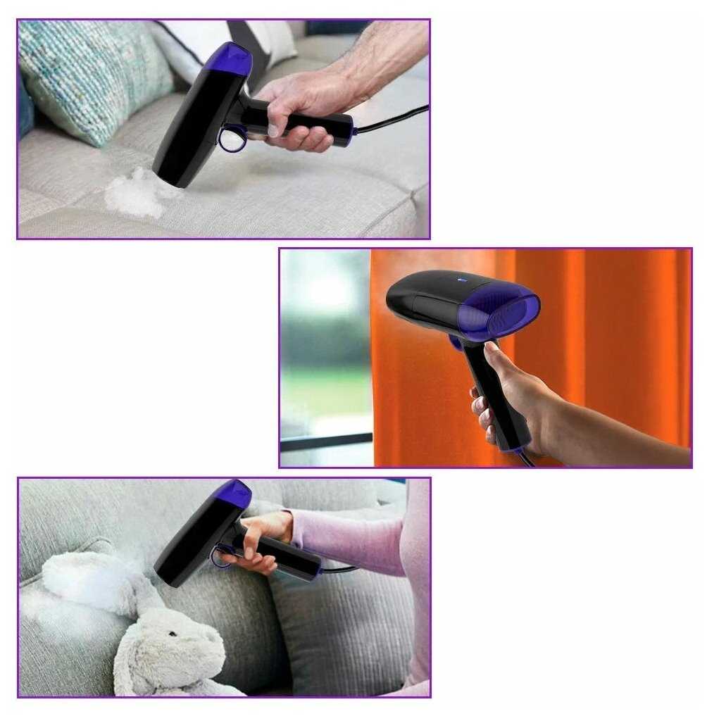 - Не требует гладильной доски — вещи можно обрабатывать на вешалке или любой ровной поверхности.