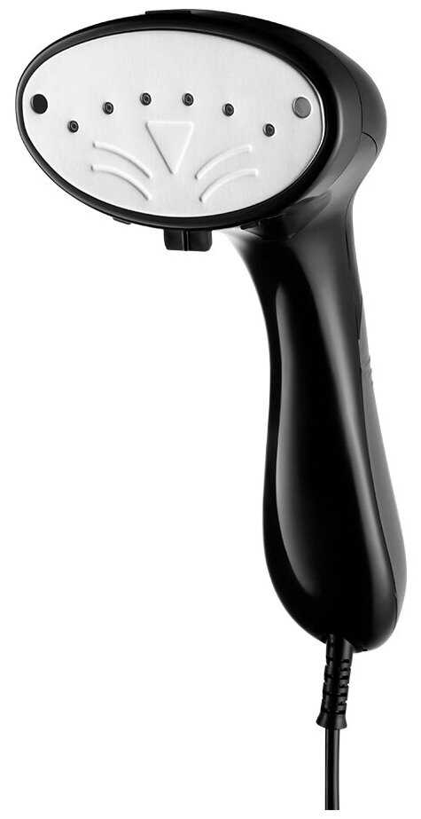 - Вес прибора (около 1 кг) позволяет легко маневрировать при вертикальном и горизонтальном отпаривании, включая обработку штор или верхней одежды.