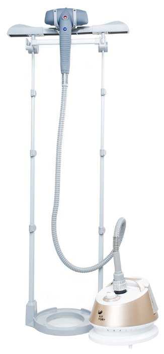 - + Красивый, размер без стойки весьма компактный, мощный пар, подогрев утюжка (поэтому не капает и не брызгает водой), удобная и легко регулируемая стойка, отлично, что отпариватель не закреплен на стойке, а легко взяв за ручку можно перемещать, например, отпаривая шторы или мебель.
