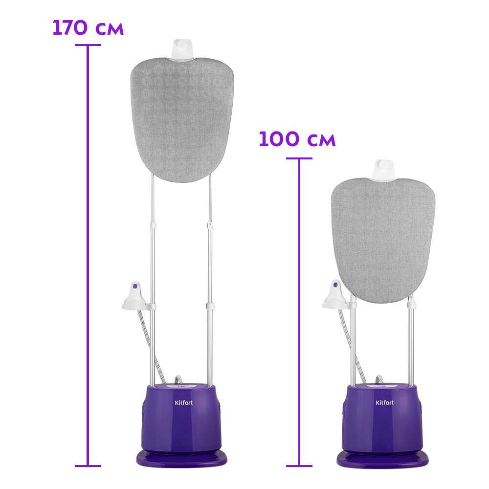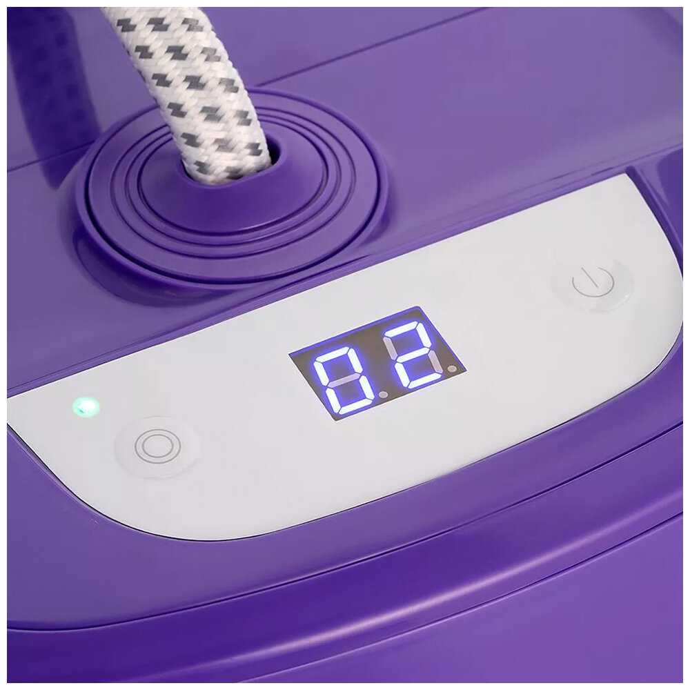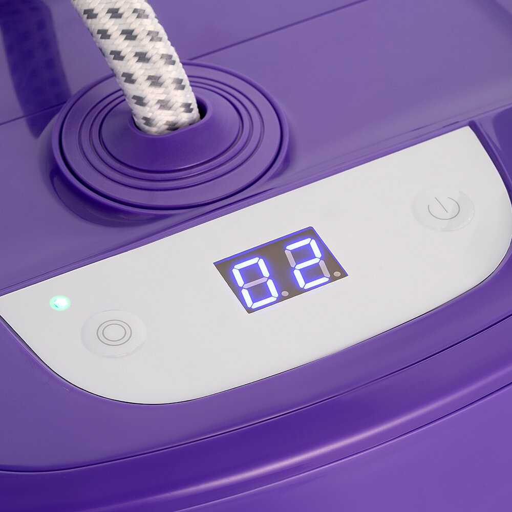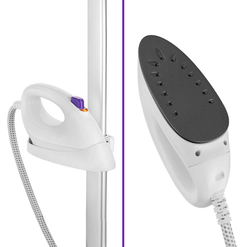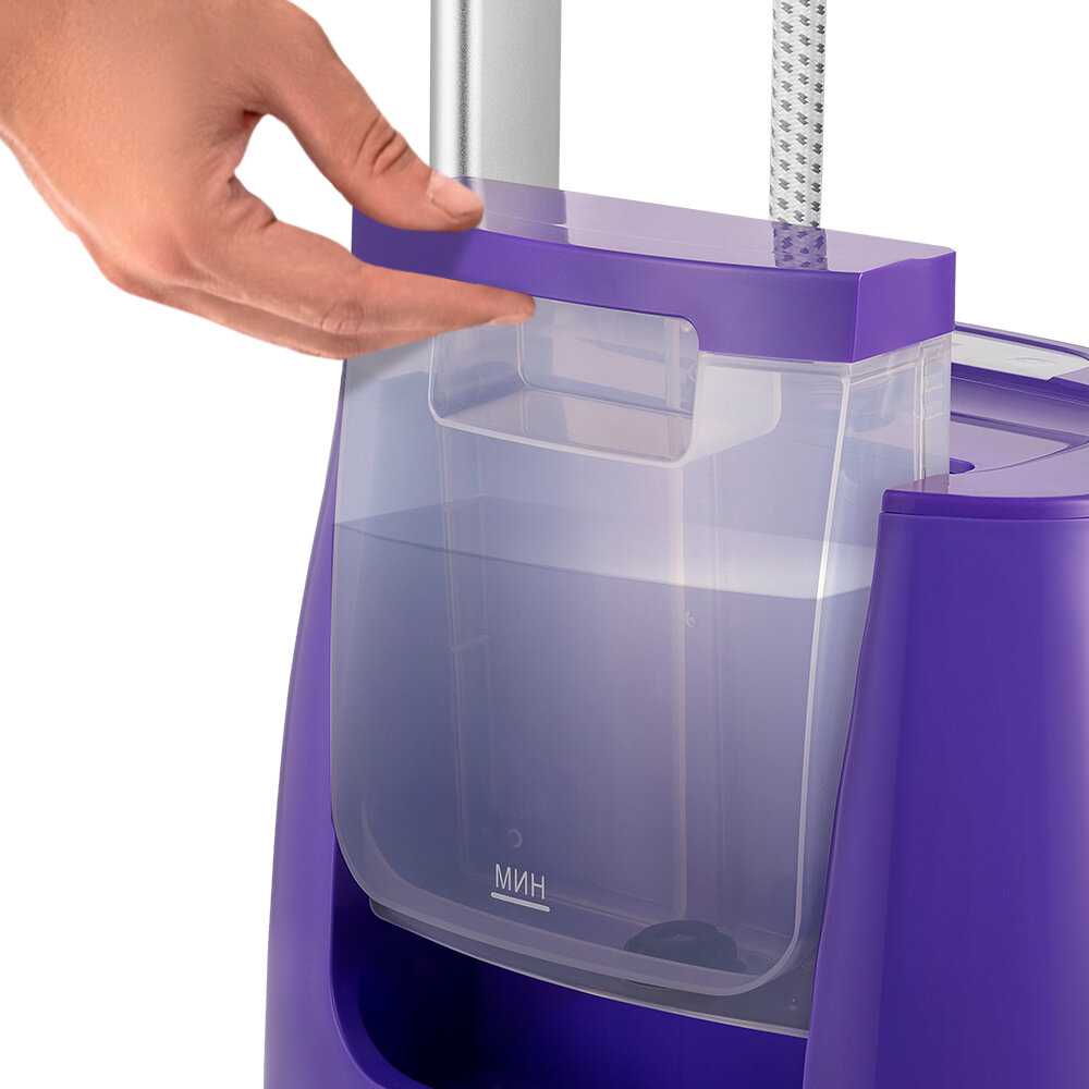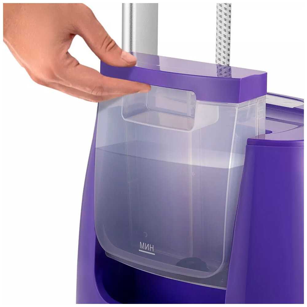 - - Пластик, который фиолетовый, - достаточно хлипкий, смотрится дешево. Нужно долго ждать, пока отпариватель нагреется. Потом при нажатии кнопки подачи пара обязательно будут брызги.