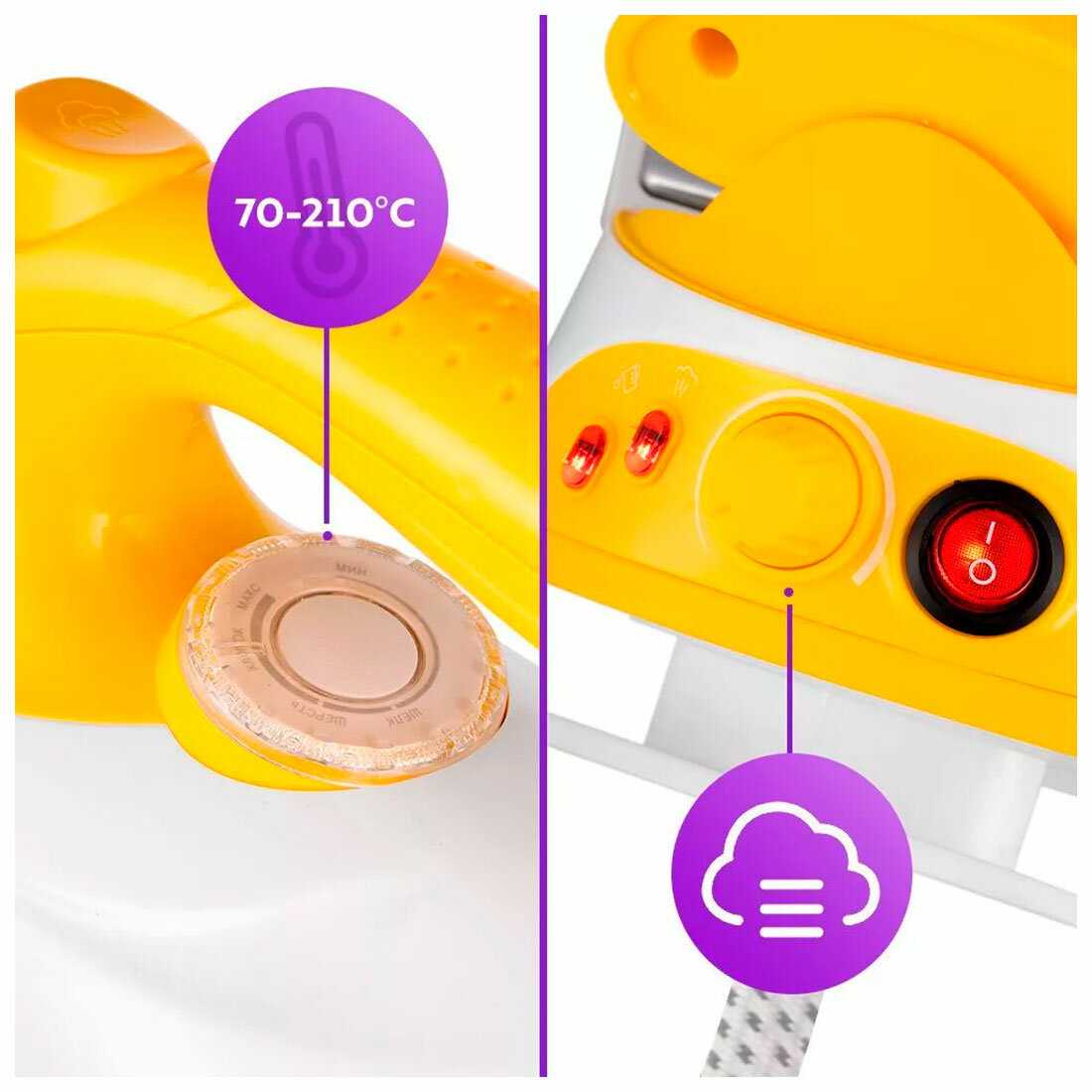 - - хотелось бы еще мощнее, тяжеловат в переносе, не подписаны градусы на самом утюге, как вертикальный отпариватель так себе