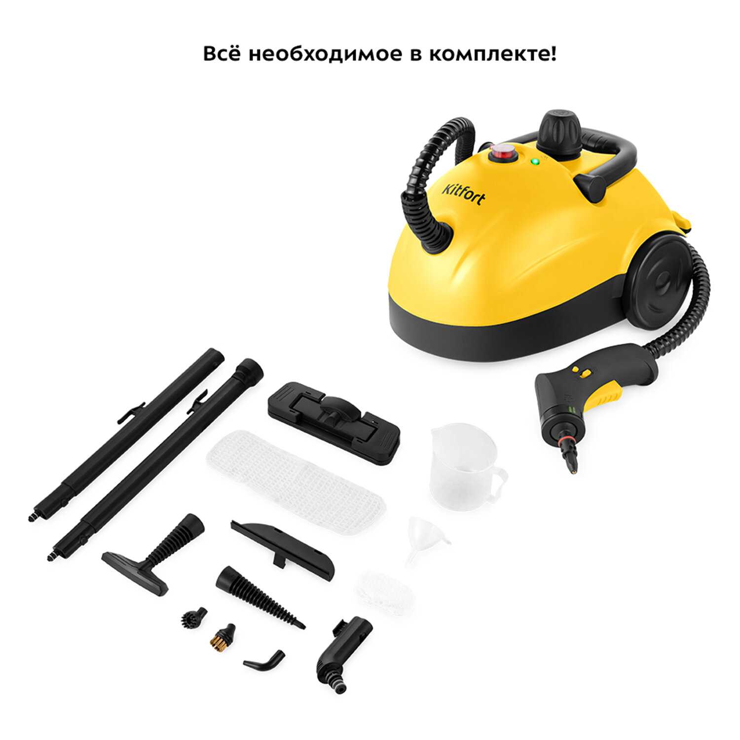 Универсальность – в комплекте несколько насадок (для пола, окон, текстиля), что делает прибор полезным во всем доме.
