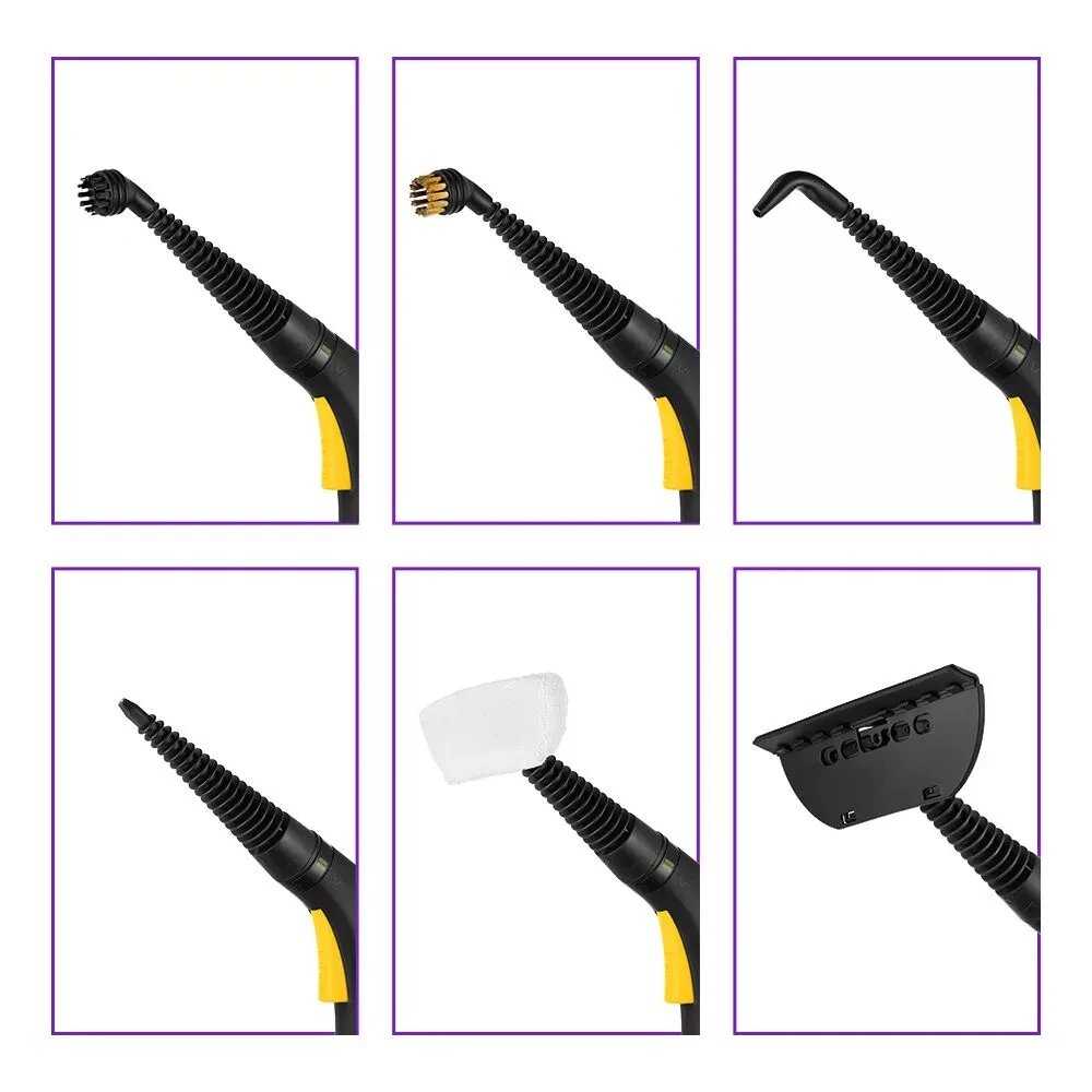 В комплекте представлен набор насадок для различных задач: широкая щетка для мытья полов, узкие насадки для очистки межплиточных швов и труднодоступных мест, а также скребок для окон. Пользователи высоко оценивают универсальность комплектации, отмечая, что с помощью разных насадок можно мыть кафель, стекла, жалюзи, кухонные поверхности и даже чистить обувь. Некоторые пользователи, однако, выражают пожелание о наличии дополнительной тряпки для пола в комплекте. Насадка для отпаривания одежды эффективно разглаживает складки и освежает ткани. -