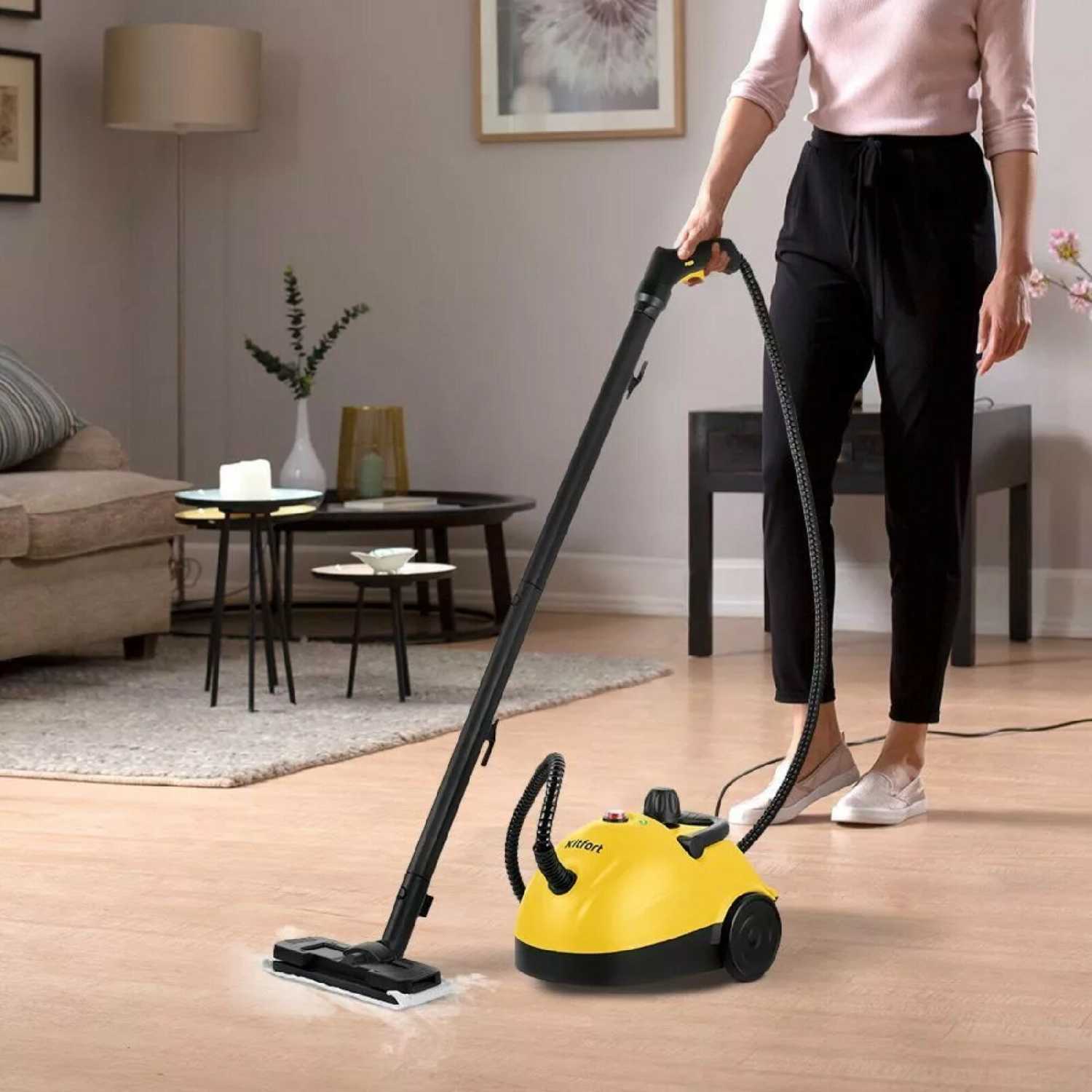 - Отсутствие химии делает прибор подходящим для домов с детьми и животными, очищая полы и мебель без вредных остатков, улучшая качество воздуха в помещении.