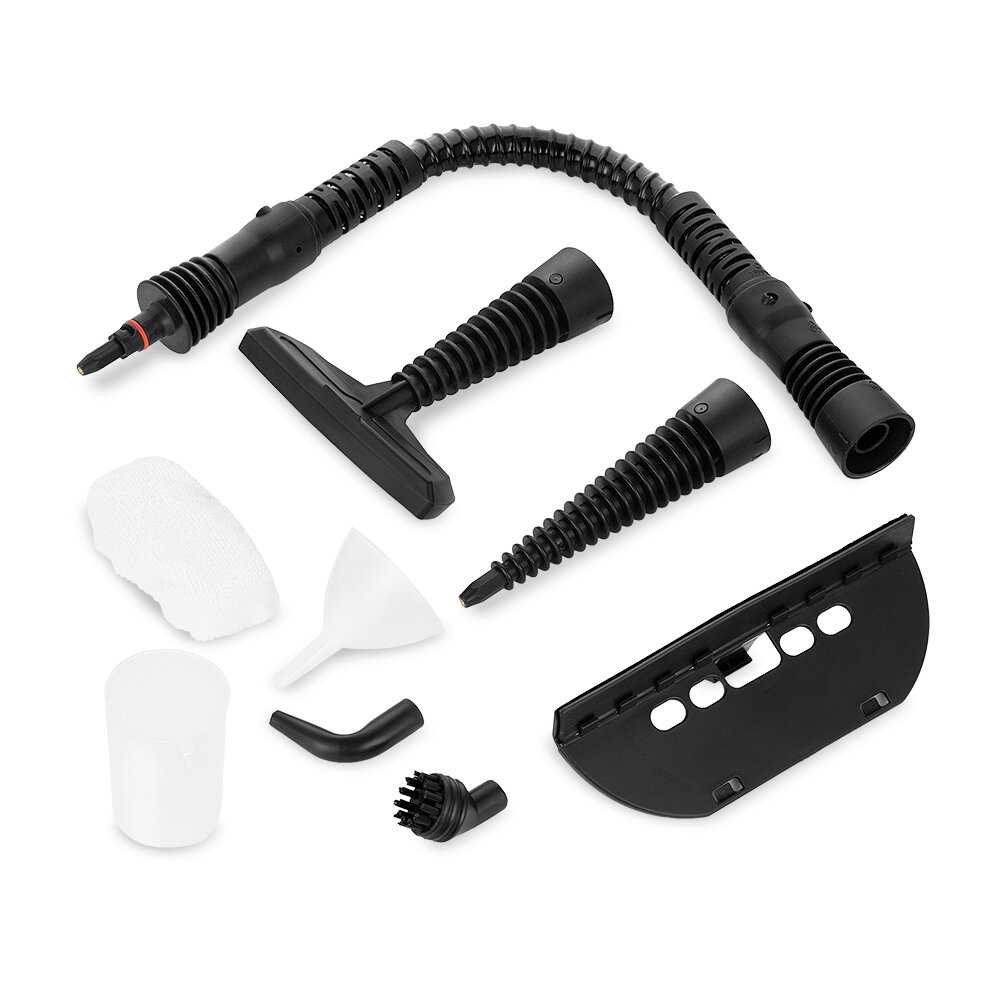 - 8+ специализированных насадок (щетка для плитки, скребок для стекла, тряпочный держатель) адаптированы под разные поверхности: от кафеля до текстиля.