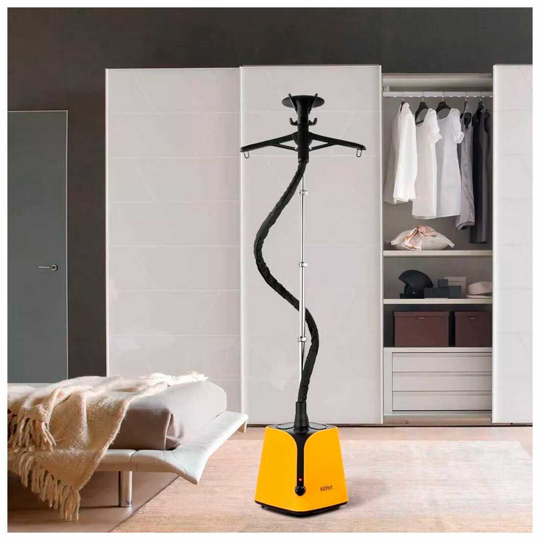 Удобство эксплуатации и эргономика: Конструкция с телескопической штангой и колесиками позволяет легко регулировать высоту (важно для высоких людей) и перемещать устройство по квартире. Вместительный бак на 1.7 литра сокращает частоту долива воды — его хватает на несколько вещей. Нагрев происходит быстро (1-3 минуты), а четыре режима пара адаптированы под разные типы тканей. Критичным недостатком признано отсутствие кнопки подачи пара на ручке: для активации/деактивации нужно каждый раз наклоняться к базе и вращать регулятор на корпусе, что неудобно при удержании одежды. Жесткий шланг иногда перегибается, блокируя подачу пара.
