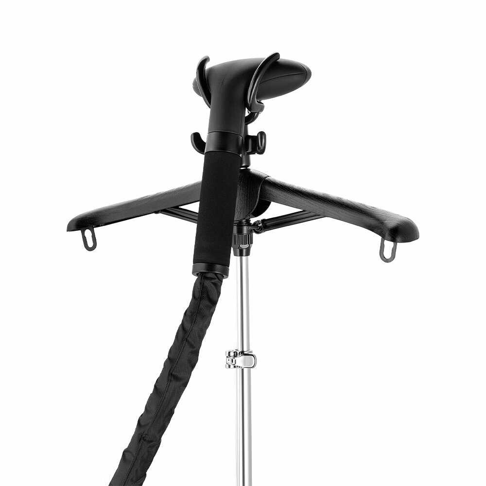- Адаптируется под рост пользователя и длину одежды от футболок до платьев в пол, делая процесс отпаривания эргономичным и без напряжения.