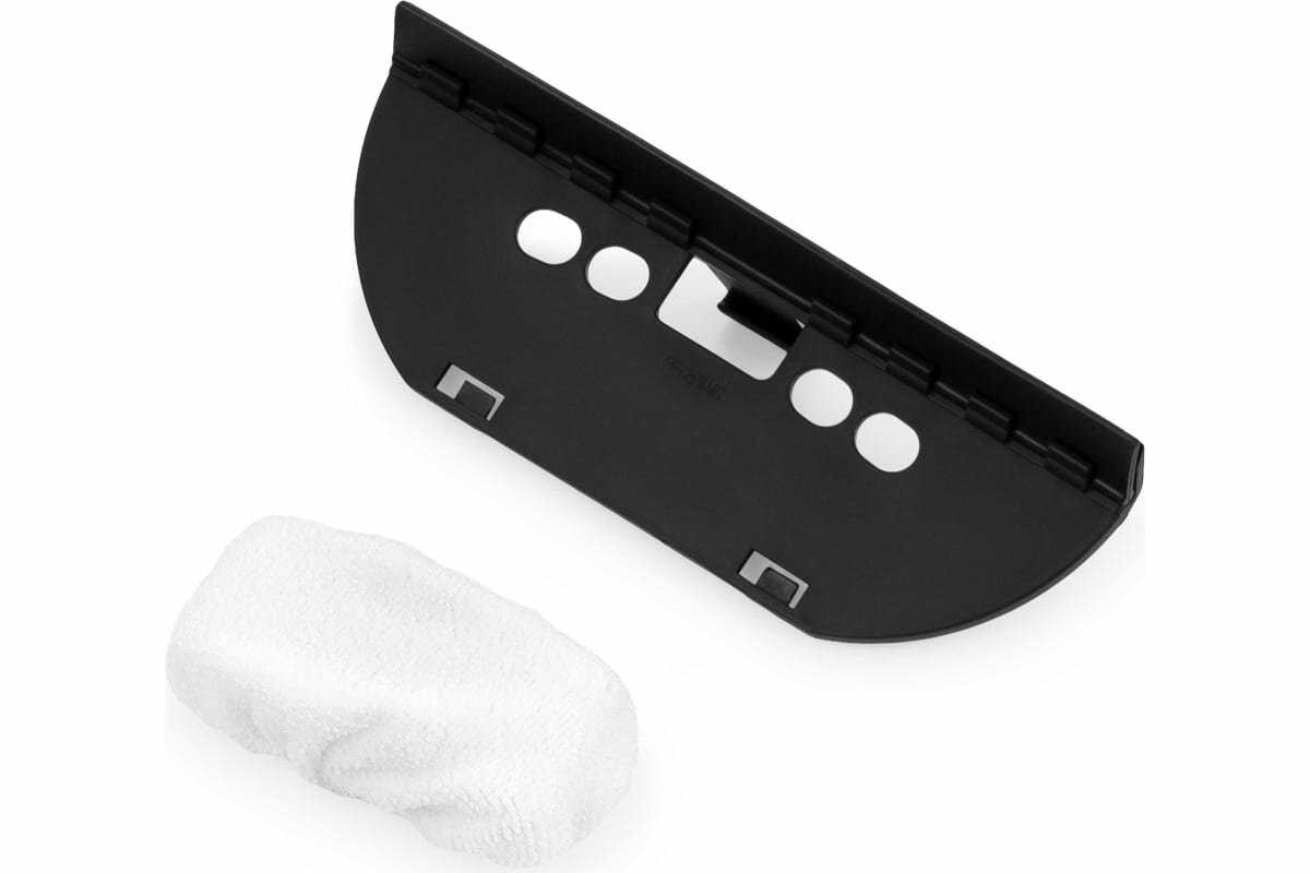 Стандартная поставка включает термостойкую варежку (защищает руки при натягивании ткани) и щетку для чистки поверхностей. Варежка особенно востребована при глажке штор, а щетка эффективна для удаления шерсти с мебели. Дополнительные насадки не предусмотрены. -