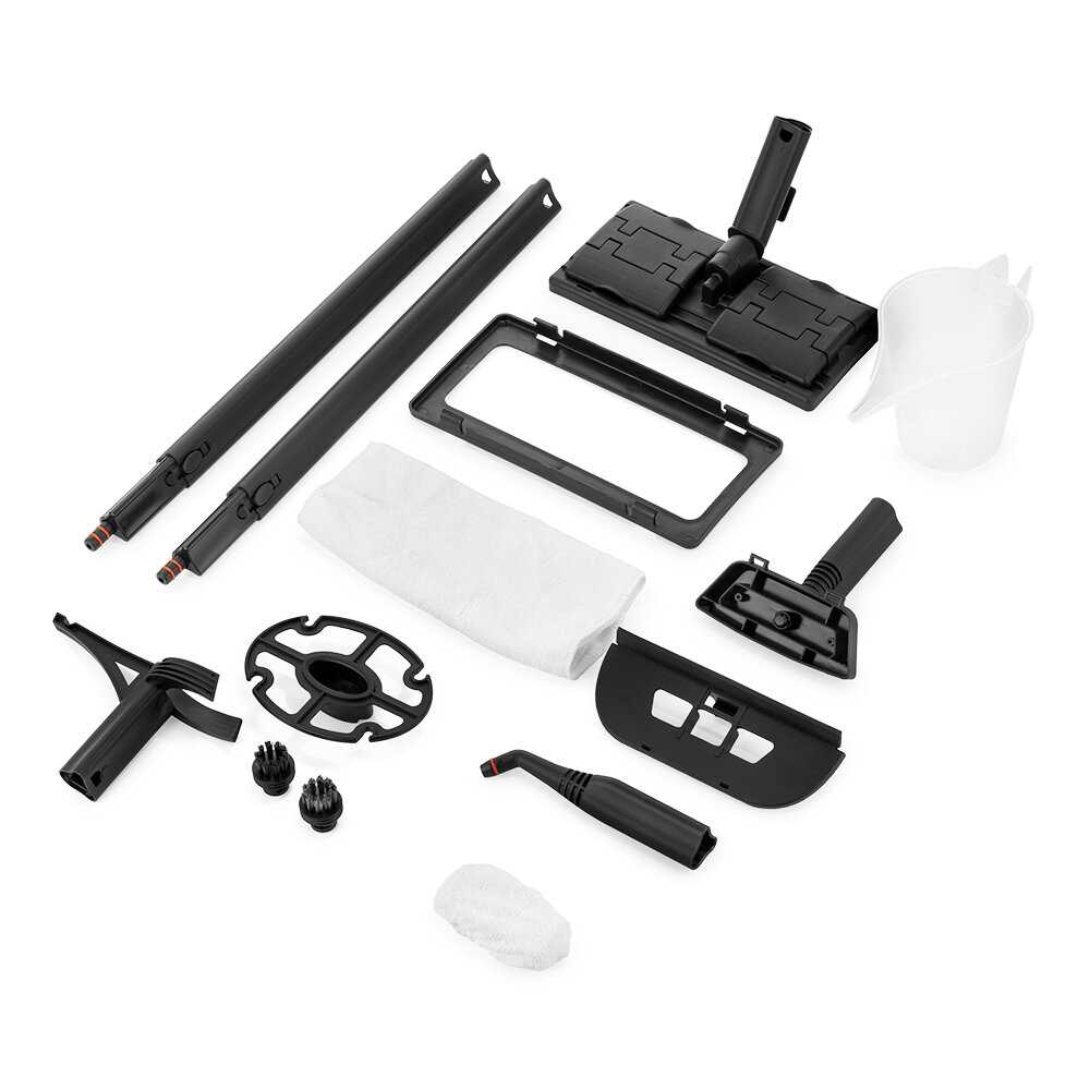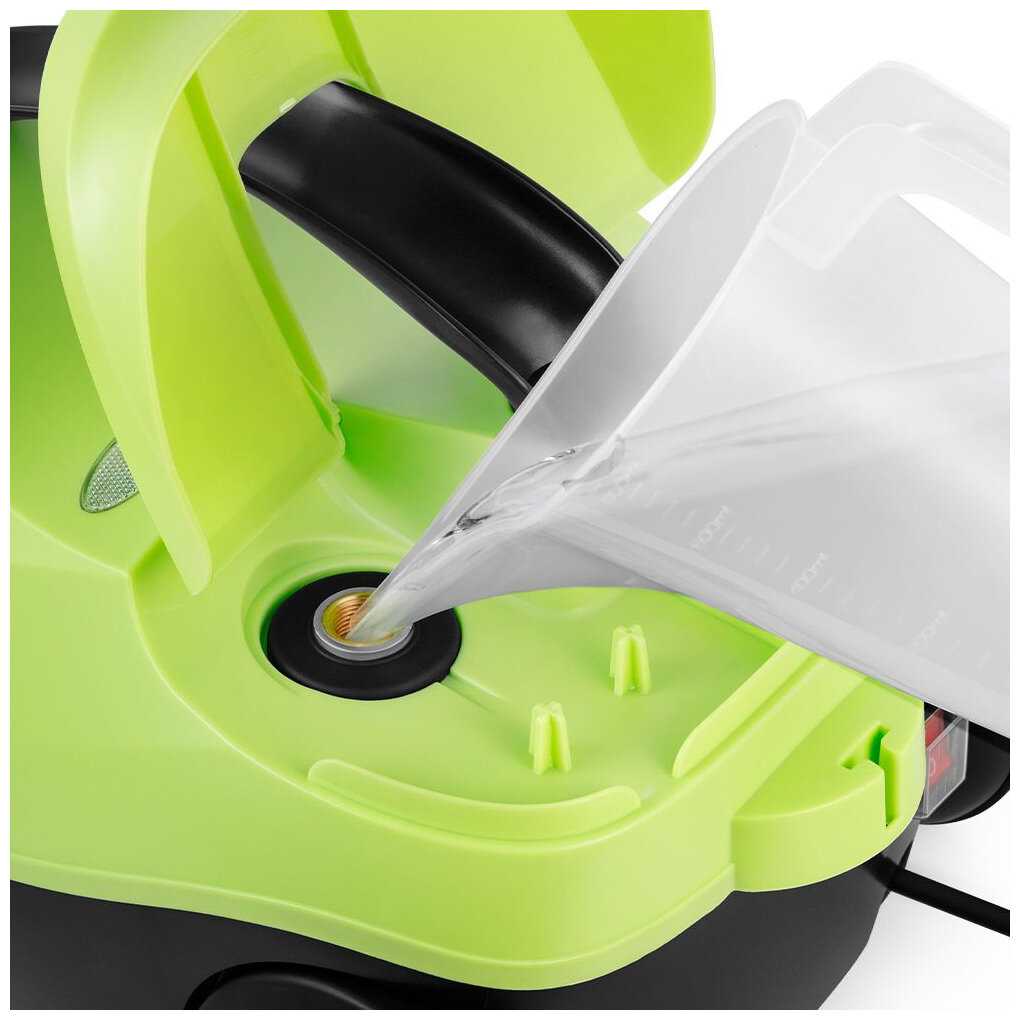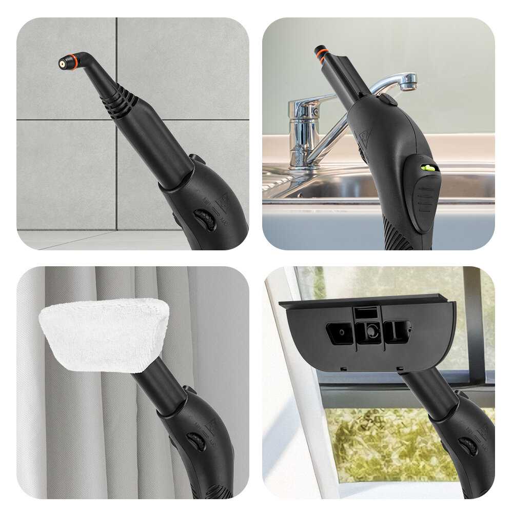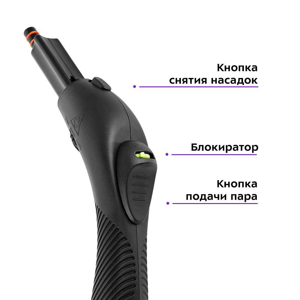 Нагревается быстро. Есть много насадок. Удлинитель ручки , классный, длинный достаёт до потолка. Есть ковшик для набора воды. Кафель и пластик моет замечательно. Так же меняются регулировка и фиксация подачи пара.