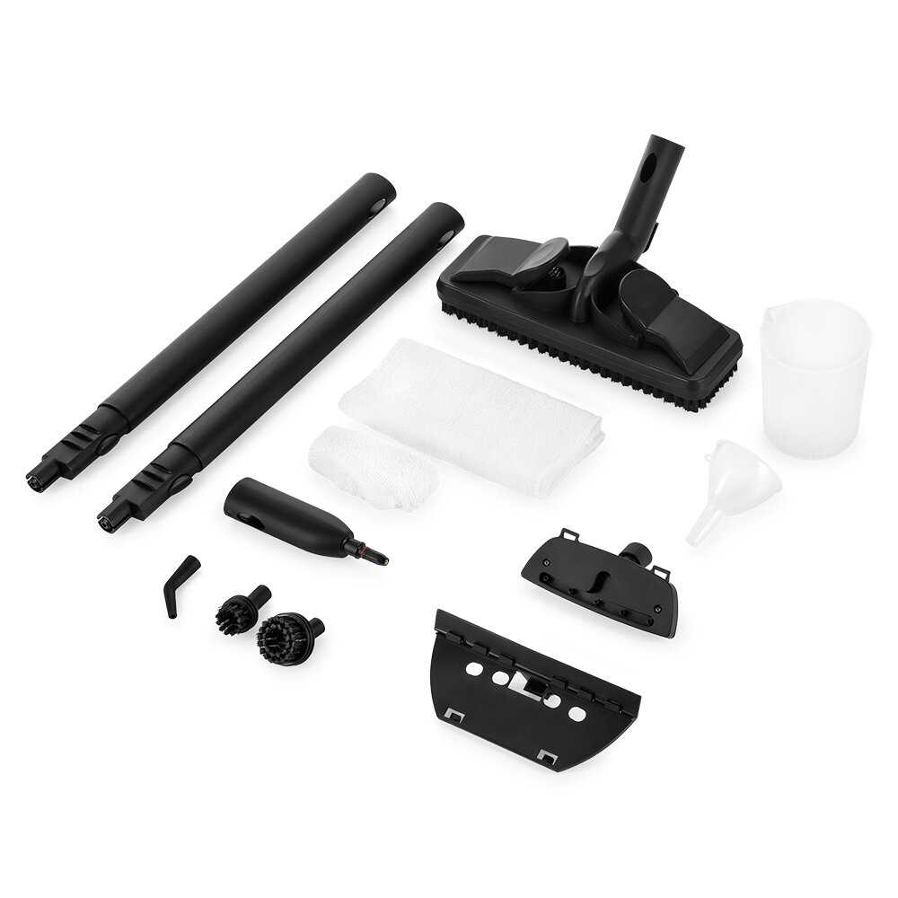 - + отличный отпариватель, объем ёмкости для воды 1,2 литра, в комплекте много различных насадок и внутри корпуса есть место для их хранения, в комплекте есть запасные уплотнители. Широкий диапазон использования, от чистки одежды, мебели, сантехники до очистки автомобиля