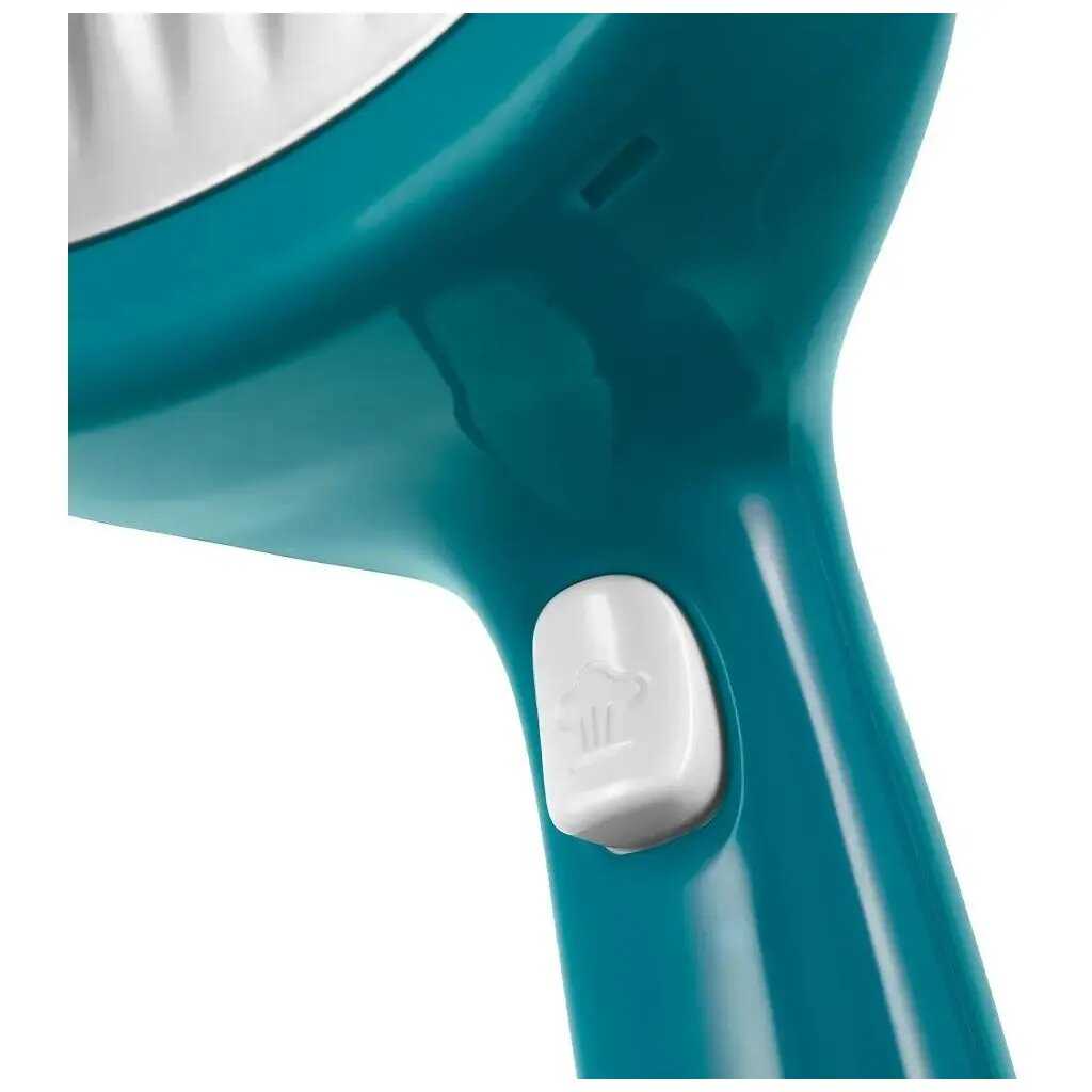 - + Хороший поток пара .в руке держать удобно . Кнопка расположена удачно ,не отжигает руку. Лёгкий, брали специально для отпусков.