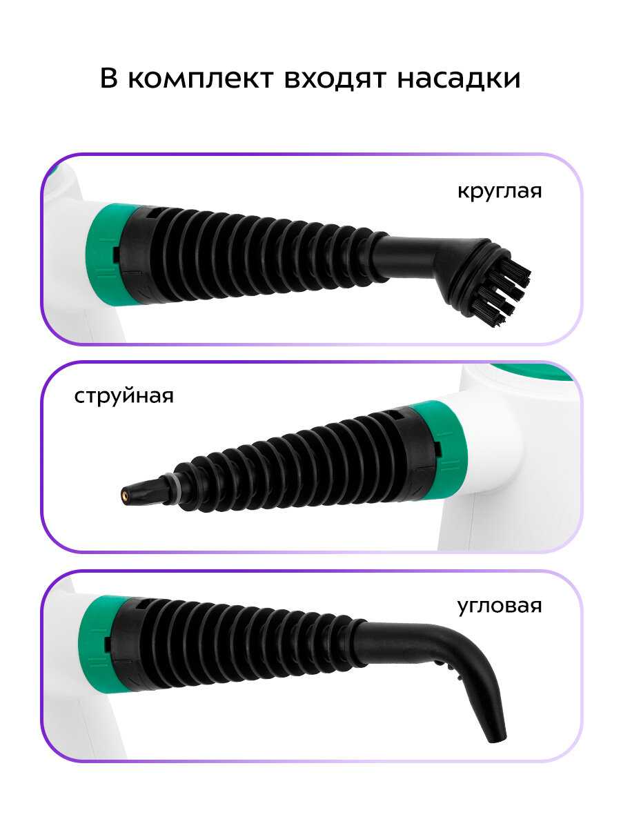 - + Хороший пароочиститель. Удобная ручка.Много насадок.Внутренни детали выполнены из метала.