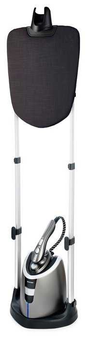 Лёгок в использовании. Можно и гладить и отпаривать. Есть насадка для деликатных вещей, гладильная доска которую можно регулировать по высоте и углу наклона. Отлично разглаживает складки и заломы. Ручка поворачивается на 90 градусов что увеличивает ширину отпаривания. Удобный съёмный бак для воды (рекомендуют дистиллированную или деминерализованную воду).