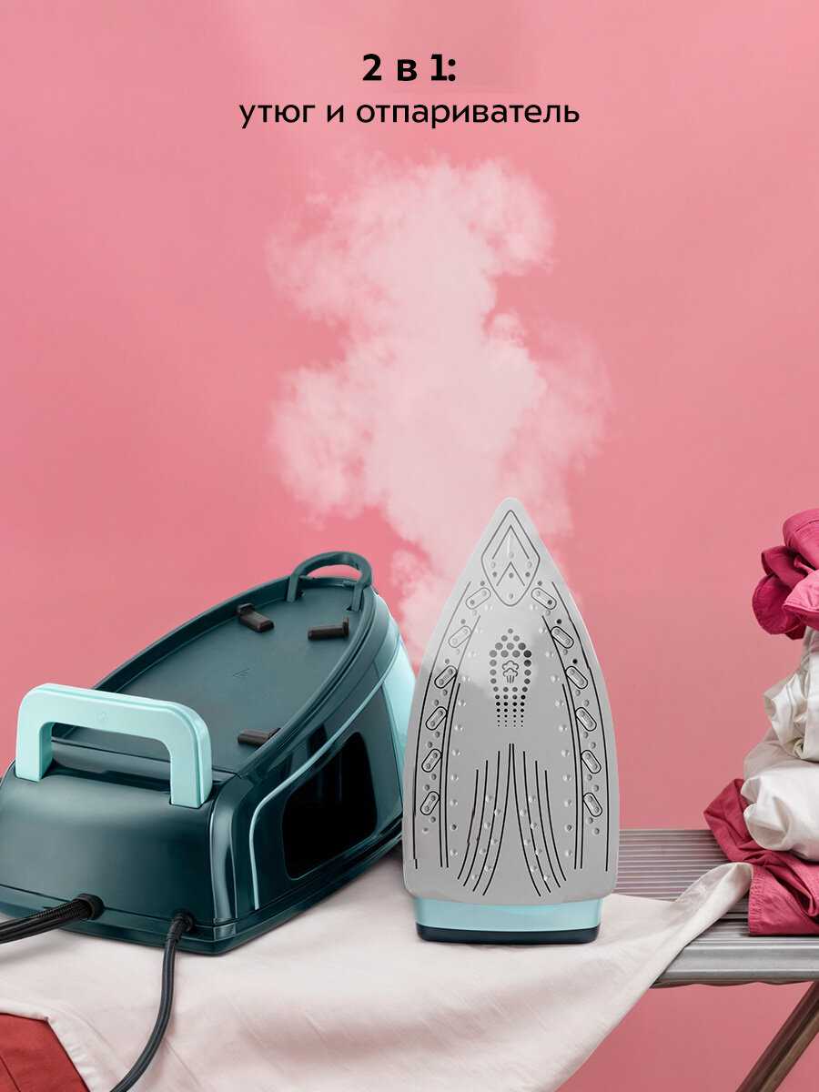 В этом все предусмотрено, утюг стоит на доске, не шумно работает, ёмкость для воды с достаточным количеством, чтоб не доливать постоянно, дизайн - красивый, цена/качество просто огонь