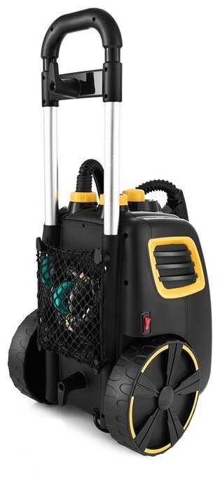 - + Большой обьем воды Хорошая мощность подачи + регулируется Длинные сетевой шнур и шланг Куча насадок Ручка прорезинена и удобно лежит в руке, кнопки удобно нажимаются Пластик плотный, выглядит надежно Удобная ручка и большие колеса удобно перевозить с места на место