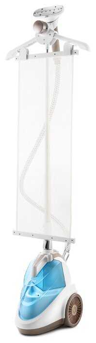 - + Очень стильно выглядит. Имеет колеса благодаря чему можно его перемещать аккуратно по квартире. Имеет сетку (доску) для удобства отпартвания вещей. Не шумный, что является большим плюсом. Хорошо отпаривает. Не плюётся водой.