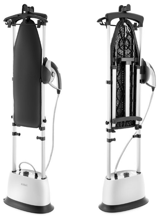 | Особенности конструкции : | держатель парового шланга, регулировка высоты доски, складная конструкция, съемный резервуар для воды |