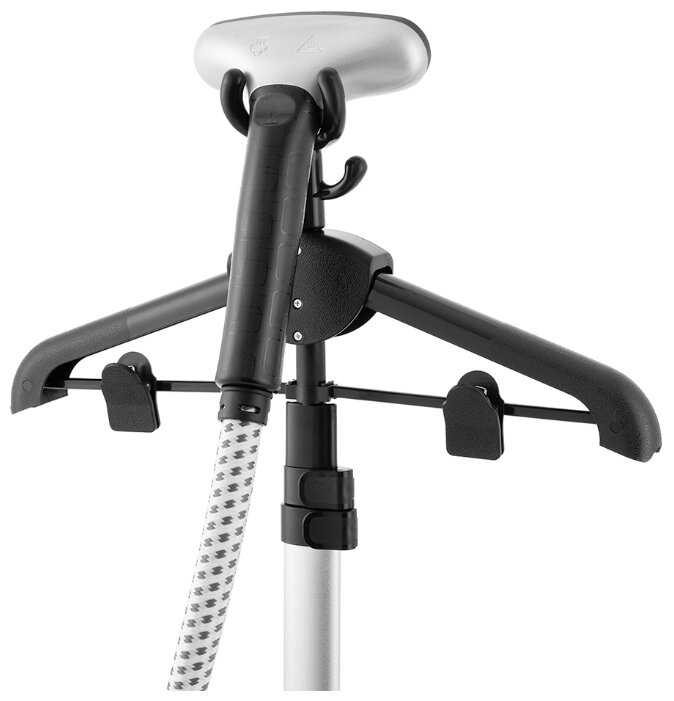 - Зажимы на вешалке предотвращают соскальзывание одежды во время обработки.