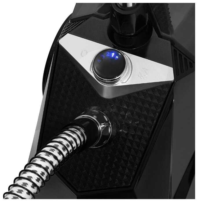 - + Мощный пар, большой резервуар для воды, прочный и толстый шланг подачи пара
