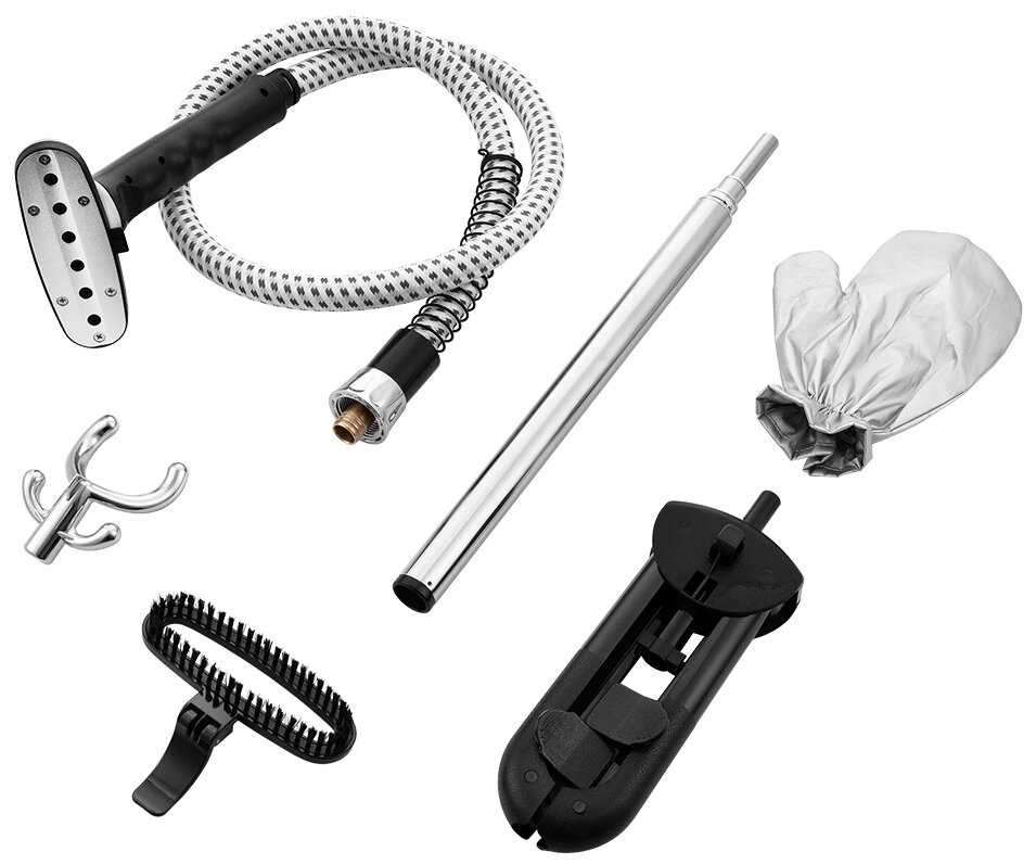 Наличие колес для перемещения отпаривателя - - Тефлоновая варежка на руку для безопасности и предупреждения ожога в комплекте очень маленького размера