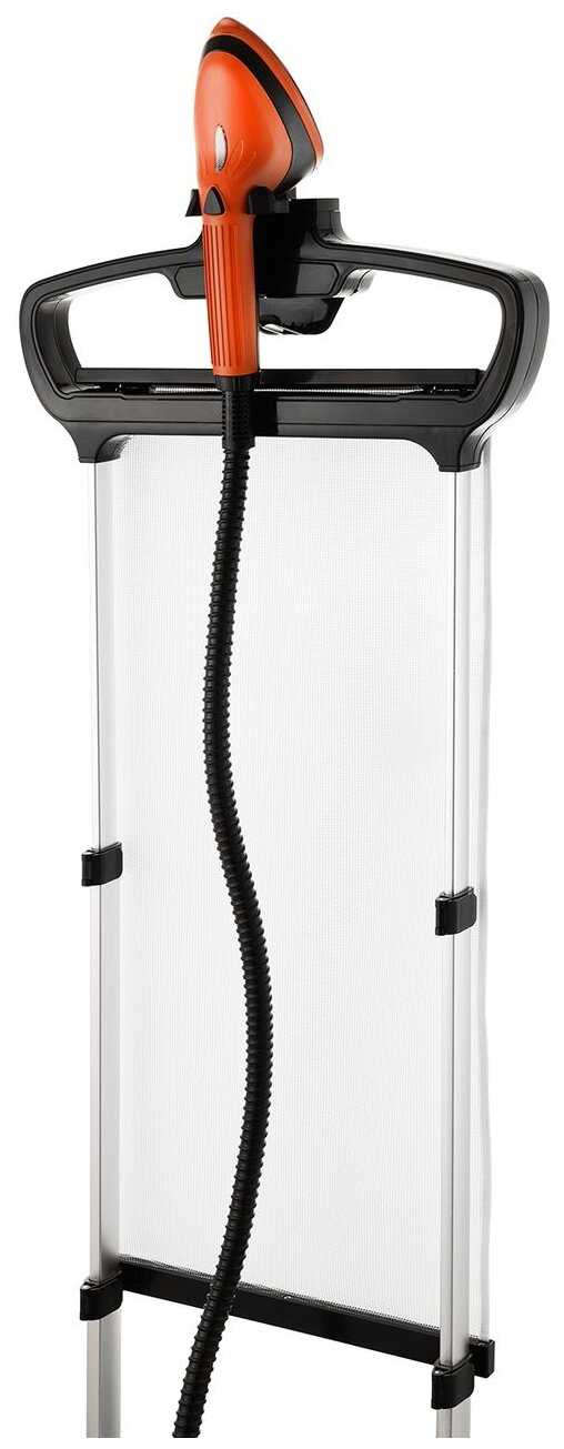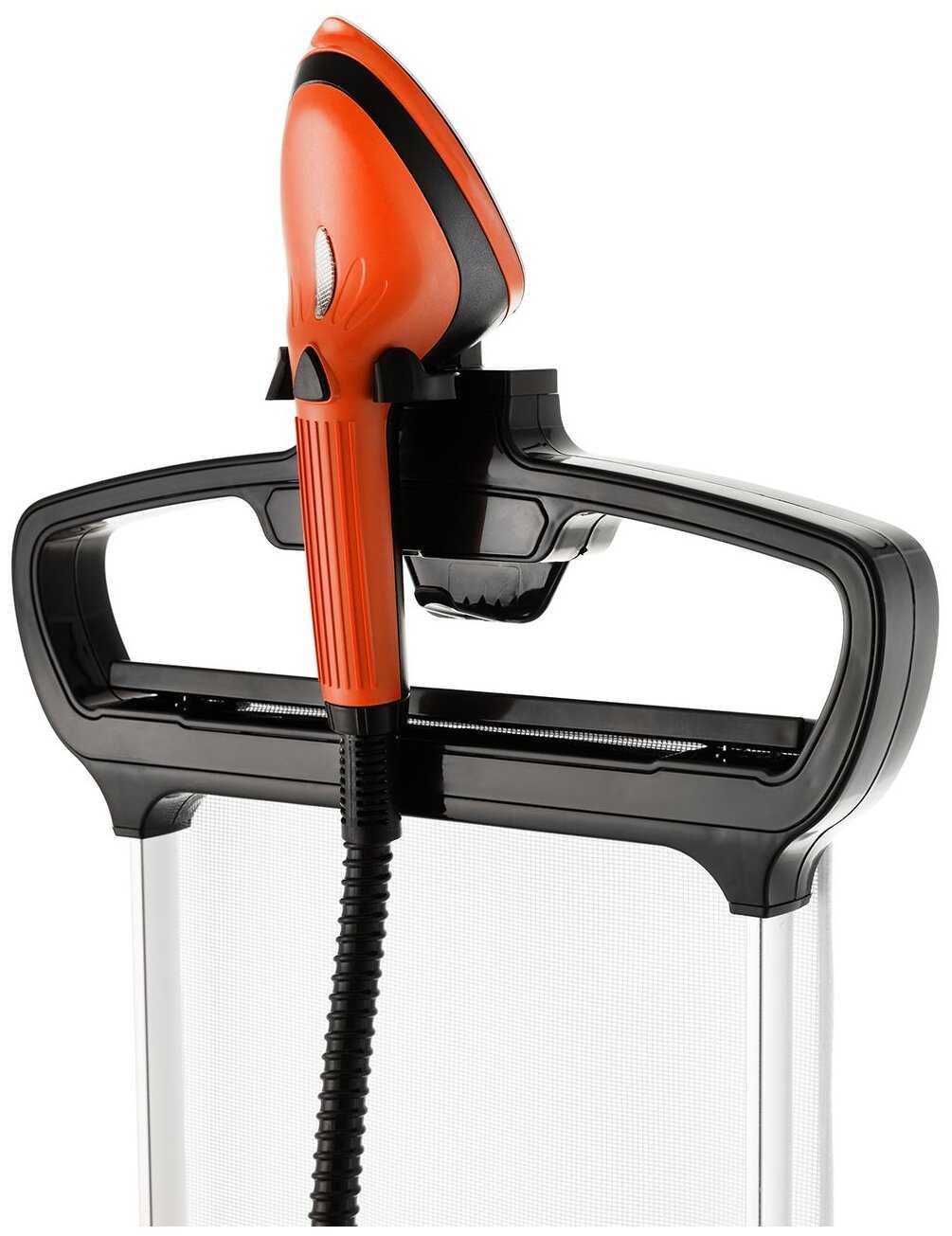 Коротковат шланг подачи пара и неудобное размещение утюжка в креплении сверху.