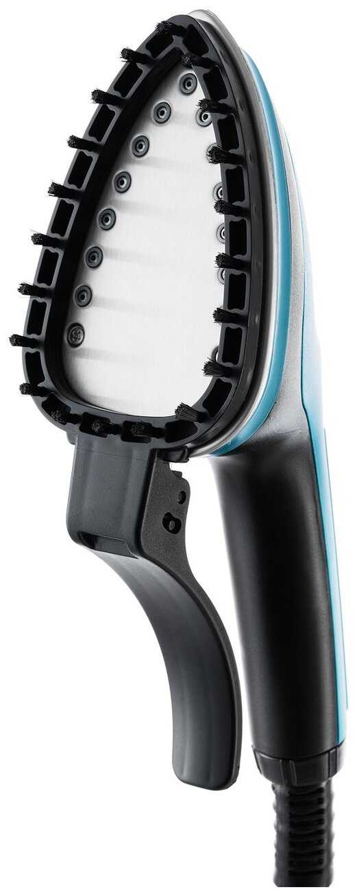- Встроенный нагревательный элемент утюжка (до 150°C) предотвращает конденсацию пара в воду, исключая мокрые пятна и брызги.
