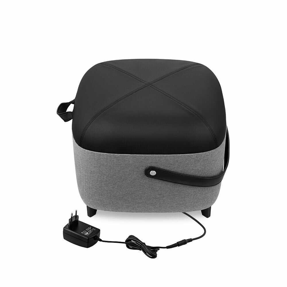 Массажер выглядит как стильный пуфик с текстурной тканью и кожаной крышкой с ручкой, приятными на ощупь. Пользователи подчеркивают, что он не портит вид комнаты, маскируется под мебель и не нужно прятать. Компактные габариты позволяют ставить его в гостиную или под стол. Внутренняя обивка не липнет к коже и не цепляется за ногти. -