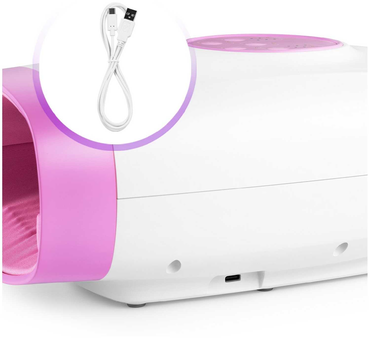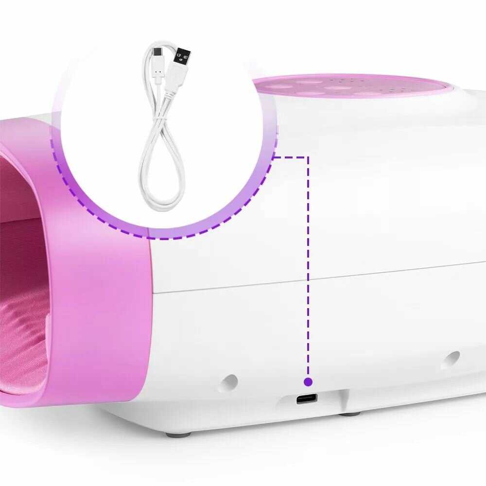 Аккумулятора хватает на 2 полноценных сеанса по 15-20 минут для обеих рук, что эквивалентно обработке 2-3 человек. Зарядка осуществляется через USB Type-C, но некоторые пользователи отмечают, что не все кабели совместимы. Устройство не поддерживает работу от сети, что компенсируется мобильностью — его можно использовать в любом месте без привязки к розетке. -